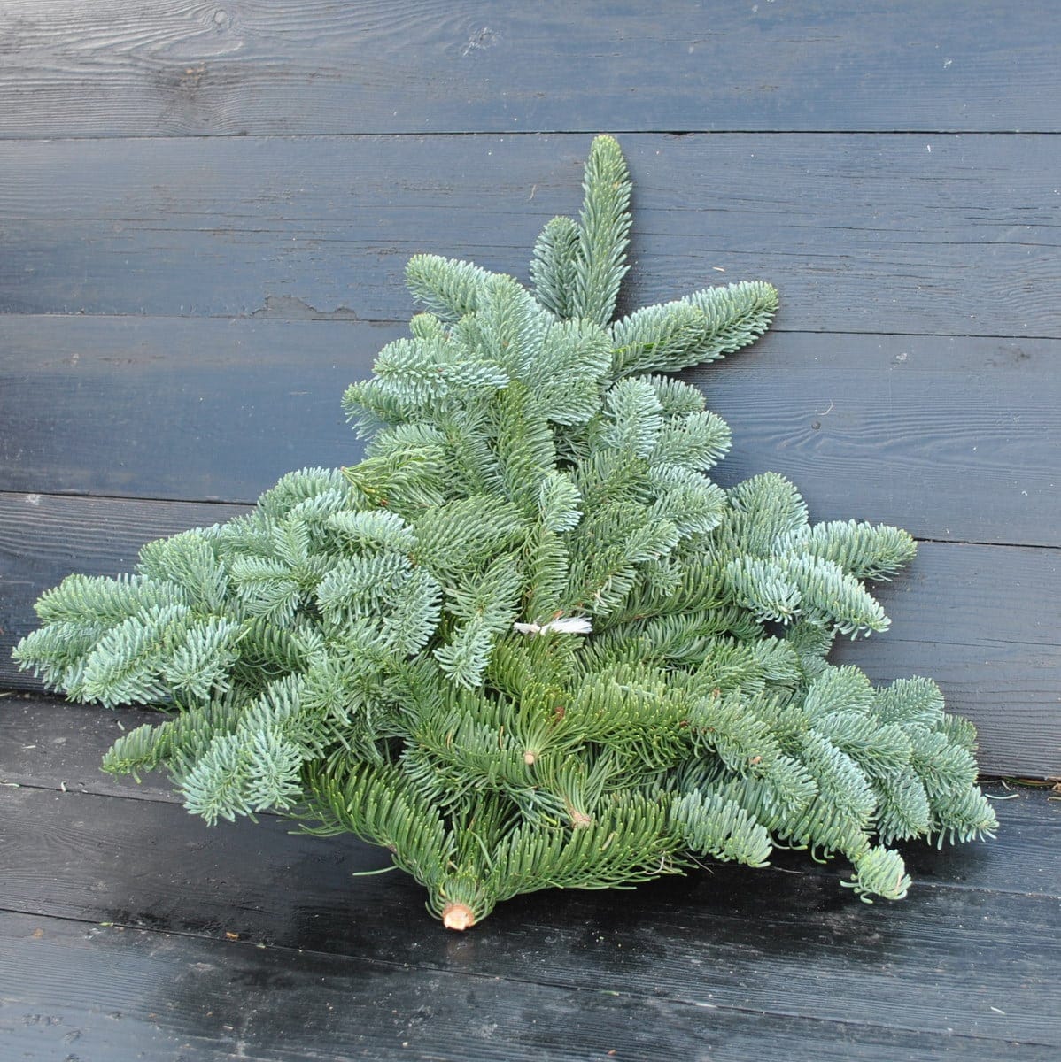 Sehr schöne und erstklassige Dekorationstanne aus eigener Produktion. Diese Nobilistanne hat die charakteristische blaugrüne Farbe. Wir züchten unser gesamtes Dekorationsgrün selbst, daher ist die Qualität immer erstklassig und immer frisch geschnitten.