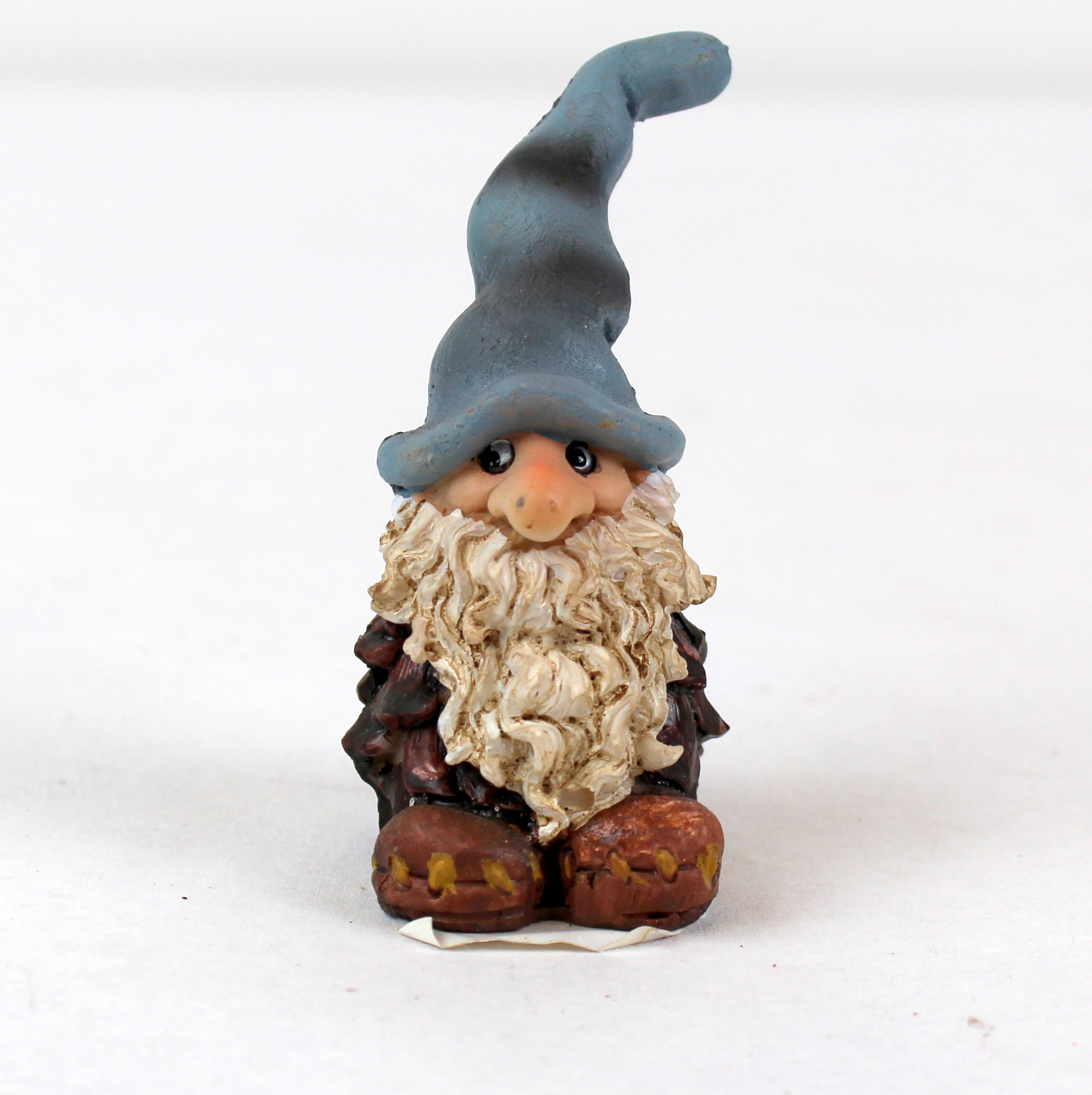 Pobra Zapfenzwerg mit blauer Zipfelmütze. Höhe 8 cm. Diese Figur ist Modell B auf dem Foto. Die Zapfenzwerge sind beliebt für Zwergenlandschaften. Die Zapfen sind keine echten Zapfen. Die Zwerge sind aus Polystone gefertigt, das auch als Outdoor-Zwergenfiguren verwendet werden kann. Der Zapfenzwerg ist eines von Susanna Hartmanns beliebten Designs von Weihnachtsfiguren.