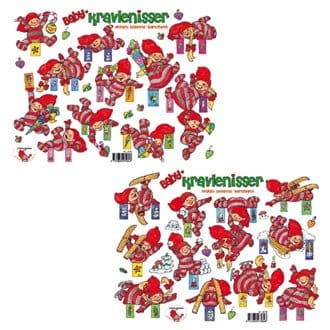Babynisser als Krabbelwichtel aus Karton zum Ausschneiden mit der Schere, 2 Bögen in der Tüte. Design von Susanna Hartmann. Die Krabbelwichtel sind mit einem Babynissejungen und einem Mädchen in lustigen Situationen. Einfach zum Ausschneiden und Aufhängen. Die beliebten Wichtelfiguren Babynisser mit der klassischen gestreiften Kleidung kaufen Sie hier. Wir haben die größte Auswahl an Pobra-Wichteln und anderem Weihnachtsschmuck.