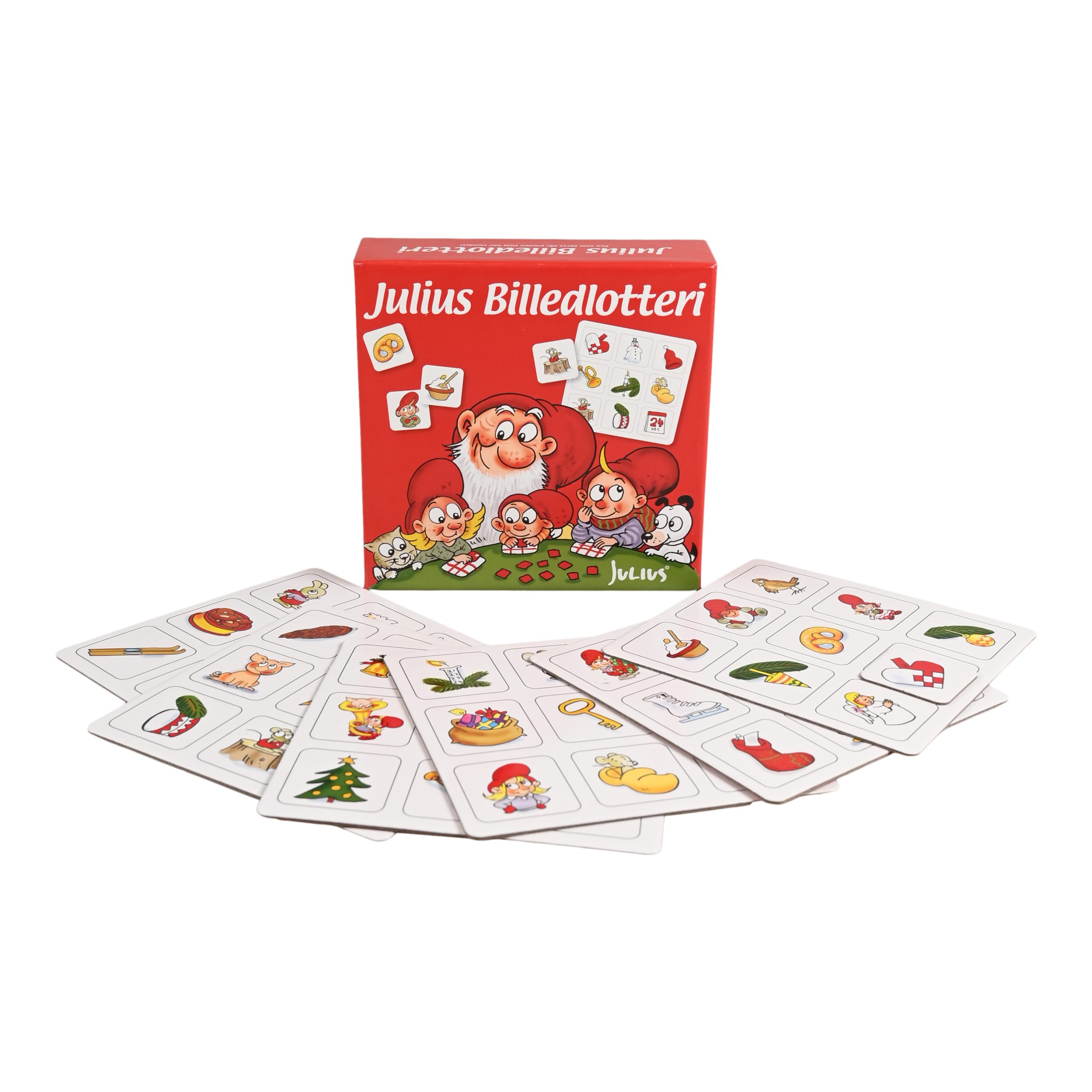 Bilderlotterie mit schönen gezeichneten Weihnachtsmotiven aus der beliebten Weihnachtswichtel Julius Serie. Wir haben viele verschiedene Arten von lustigen und gemütlichen Weihnachtsspielen, die gute Ideen für Kalendergeschenke, Adventsgeschenke, Päckchenkalendergeschenke, Gastgebergeschenke, Geburtstagsgeschenke, Päckchenspielgeschenke und Mandelgeschenke sind. Schauen Sie sich hier in unserem Wichtel-Shop bei alttiljul.dk um. Brauchen Sie ein neues lustiges Brettspiel für die Weihnachtstage oder als Mandelgeschenk? Dann sind Sie hier genau richtig. Hier finden Sie die besten Brettspiele für die Weihnachtsunterhaltung. Wir haben viele verschiedene Brettspiele und Kartenspiele für alle Altersgruppen mit Weihnachten als Thema. Suchen Sie nach spannenden Puzzles mit Weihnachtsmotiv, dann haben wir auch Puzzles in verschiedenen Größen. Wenn die Familie in der Weihnachtszeit zusammen Spaß haben möchte, ist es fantastisch, ein lustiges Weihnachtsspiel zu haben, das man zusammen spielen kann. Brettspiele sind ein Hit und gute Unterhaltung für alle Altersgruppen, und hier im Webshop alttiljul.dk haben wir eine riesige Auswahl an lustigen Weihnachtsbrettspielen. Trauen Sie sich, Ihr Kind oder Enkelkind in einem Gedächtnisspiel oder Memory herauszufordern, bei dem es darum geht, 2 gleiche Bilder oder 2 Bilder, die zusammenpassen, zu finden? Ein 4-jähriges Kind ist ein Ass im Erinnern? Lustige Spiele zu Weihnachten sind gut als Kalendergeschenke und Adventsgeschenke. Wenn man einen günstigen Päckchenkalender für sein Kind machen möchte, ist es eine gute Idee, Puzzles zu kaufen und die Teile in 24 Geschenke aufzuteilen, sodass das Kind jeden Tag im Dezember ein oder mehrere Teile des Puzzles erhält. Puzzleteile können in schöne Kalenderbeutel gesteckt werden, die Sie auch bei uns finden können. So kann es nicht einfacher und günstiger gemacht werden. Viele der Weihnachtsspiele haben Julius Wichtel als Themenfigur. Wichtel Julius und seine Wichtelfamilie sind eine gemütliche Weihnachtsfigur, die in vielen unserer Weihnachtsartikel wiederkehrt.