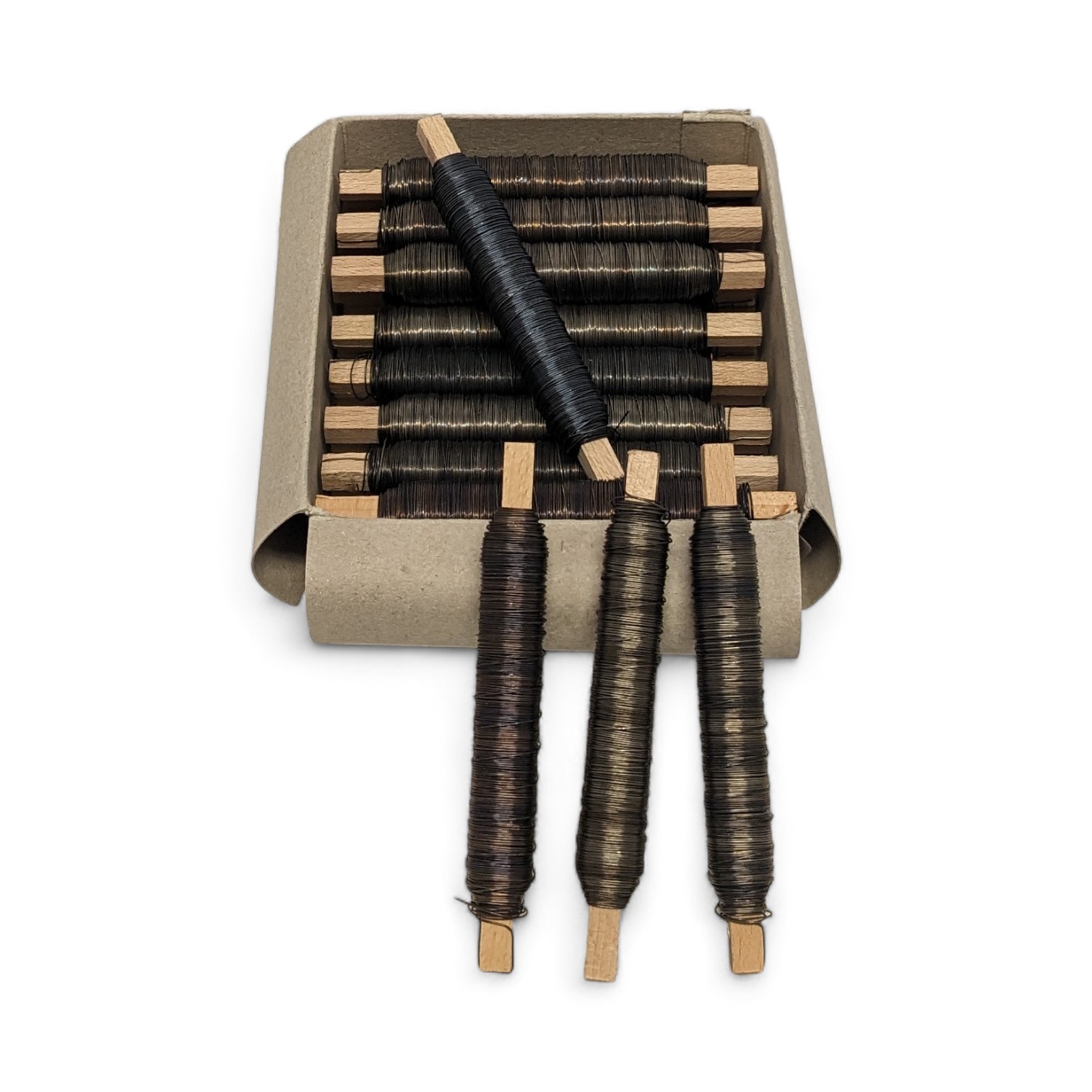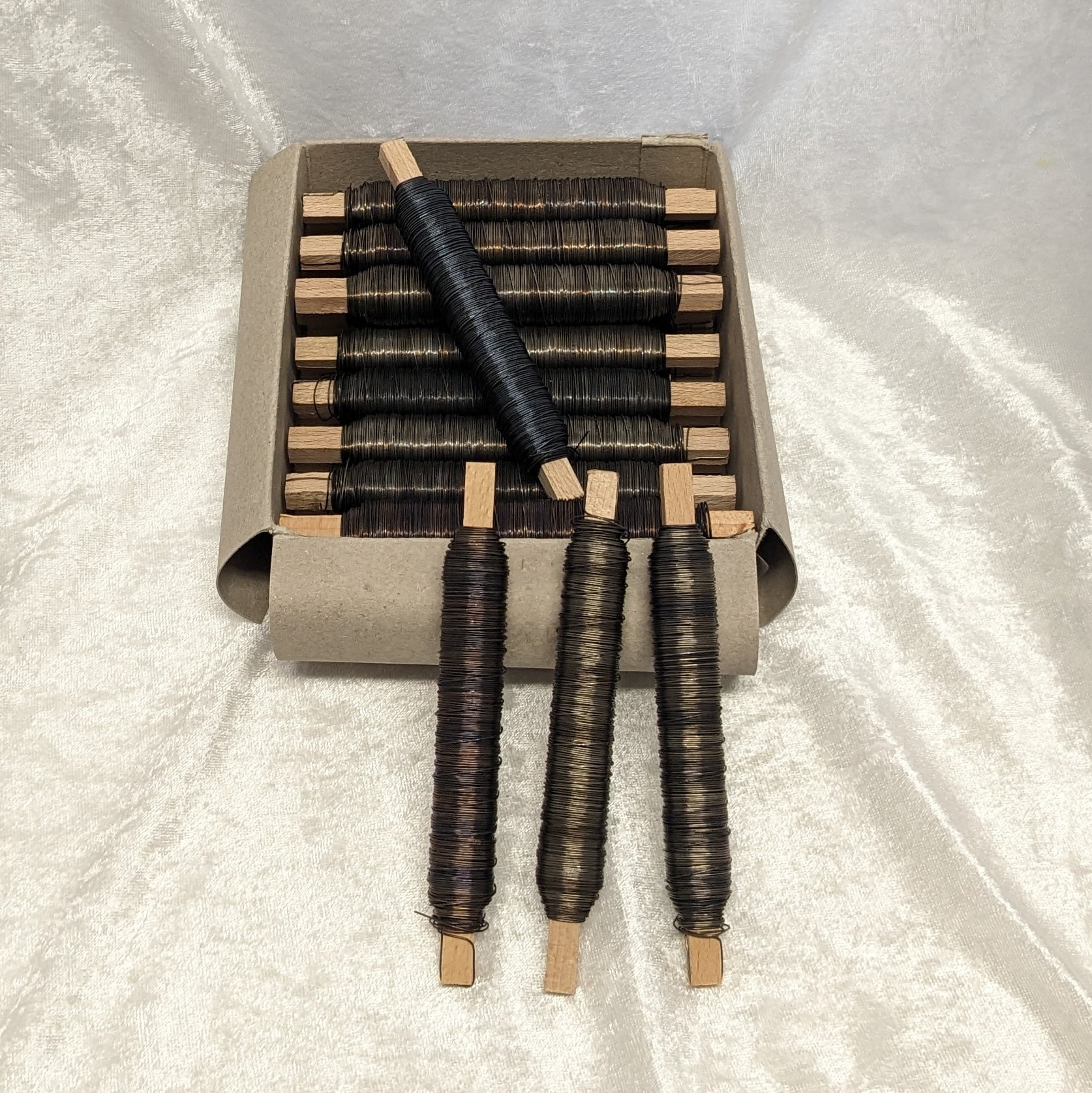 Kaufe hier günstig eine ganze Kiste mit Wickeldraht und Dekorationsmaterialien. Dieser schwarze geglühte gewöhnliche Stahldraht – Wickeldraht 0,5 mm dick ist einfach zu handhaben und unverzichtbar, wenn z.B. Adventskränze, Ehrenpforten, Tannengirlanden oder andere Blumenmaterialien gebunden werden müssen.