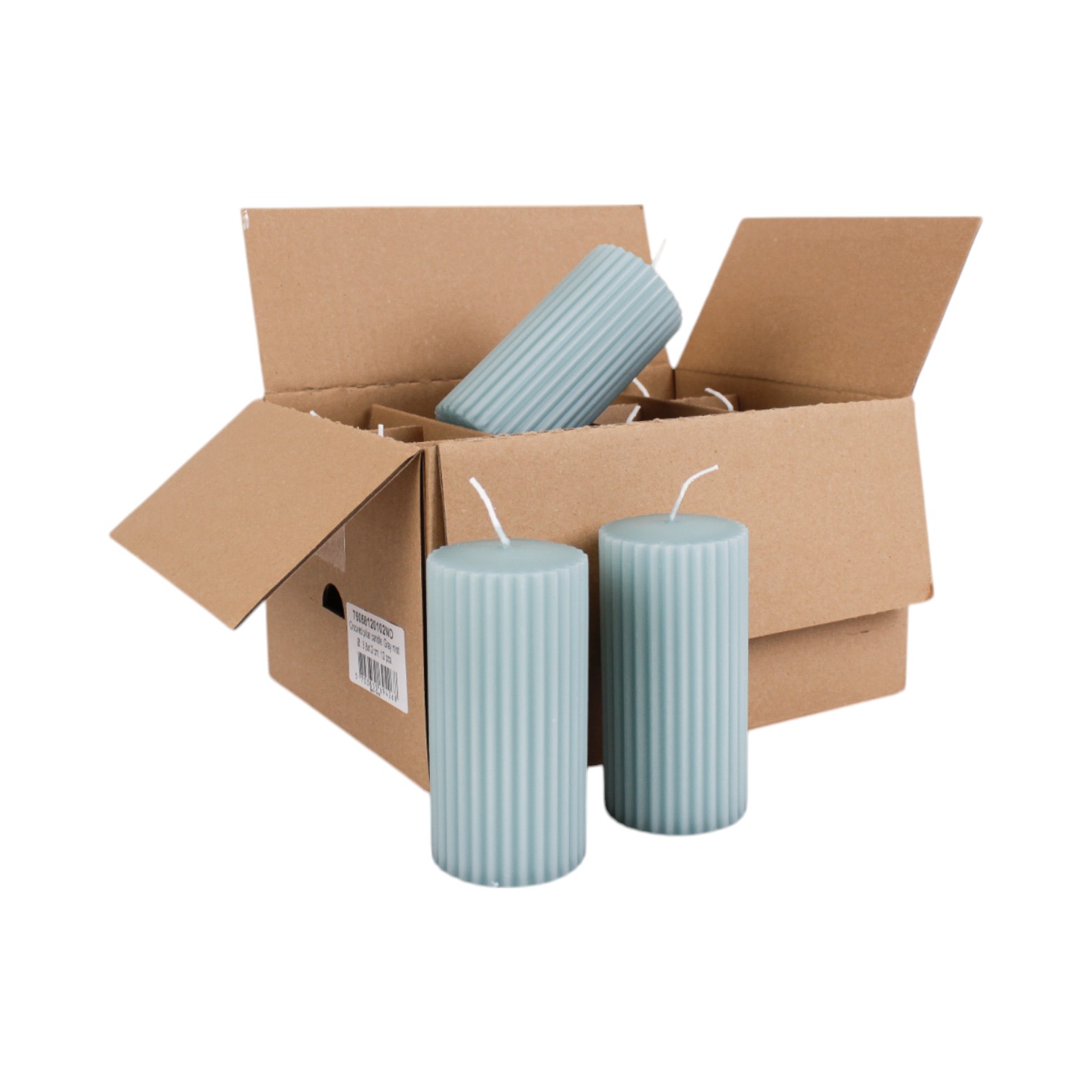 Blockkerzen mit Rillen. Staubig grau-grün mistelzweigfarben. Kiste mit 12 Stück. Dies ist eine sehr schöne und elegante Kerze. Die gerillte Oberfläche lässt die Spitze der Blockkerze wie einen Stern aussehen, wenn sie angezündet ist und abbrennt. Passt perfekt zu Alltag und Fest. Kaufen Sie eine ganze Kiste mit 12 Stück und sparen Sie Geld.