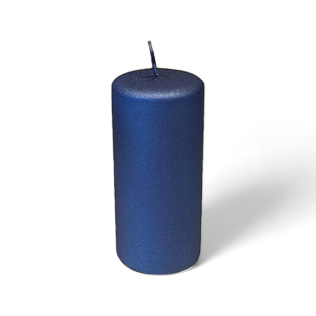 Blockkerze JEANSBLAU 6,8 x 15 cm. Metalloberfläche