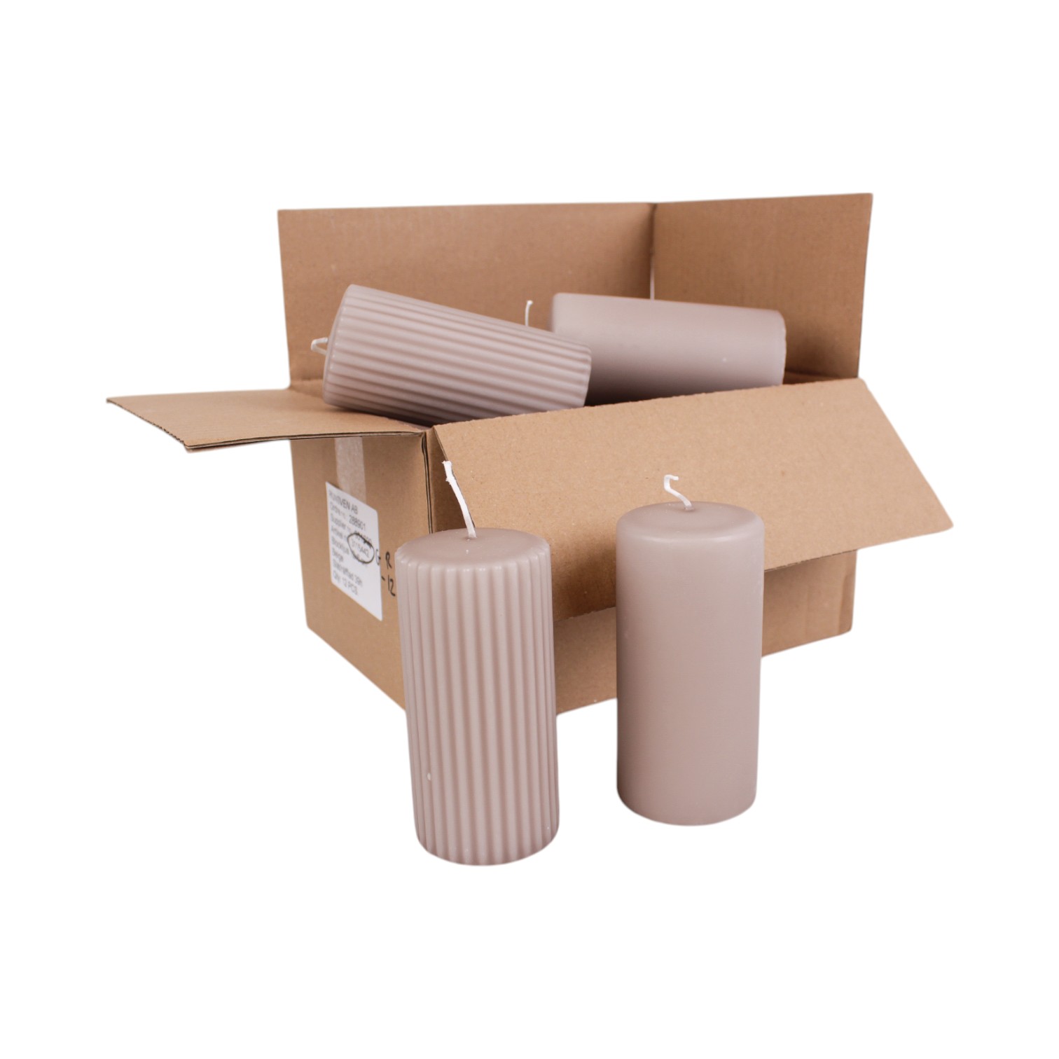 Blockkerze mit und ohne Rillen, beige, 5,8 x 11,5 cm (12 Stk.)