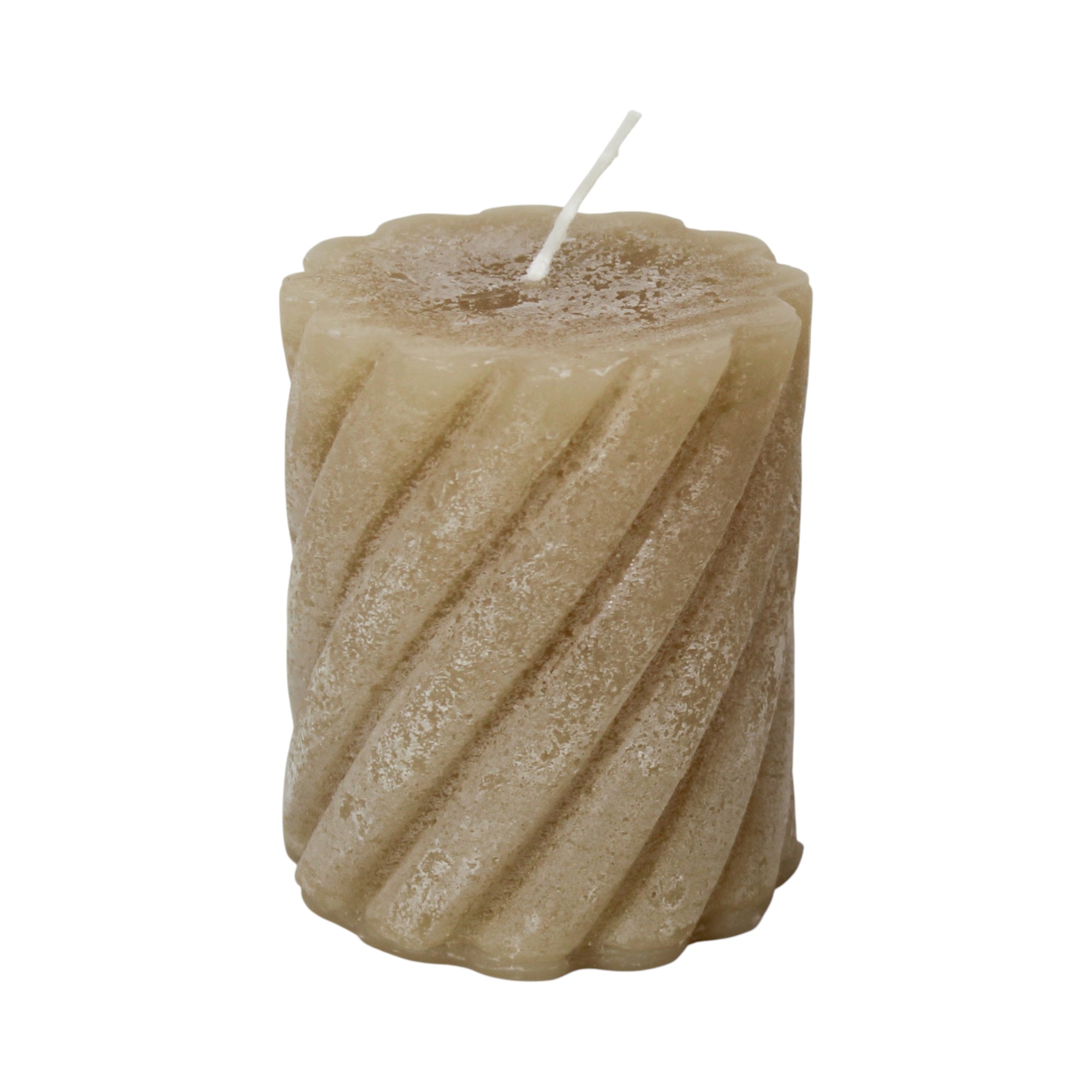 sandfarvet spiralsnoet rustikt bloklys med flad top på 7 x 8,5 centimeter