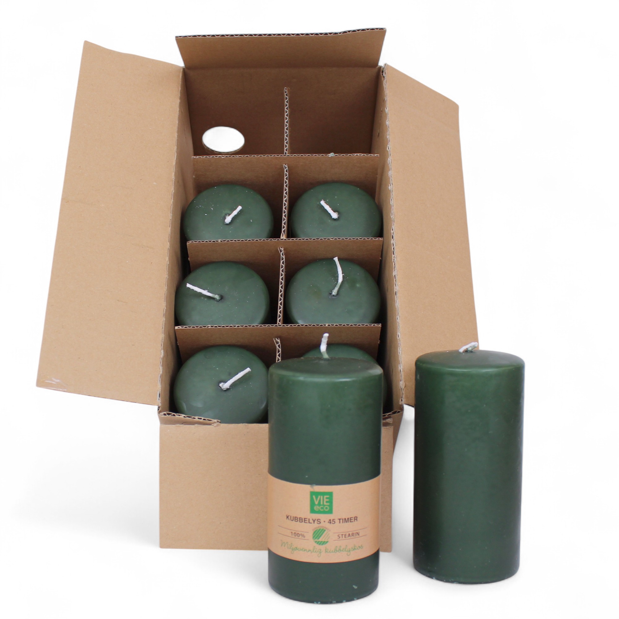 kasse med 8 styk svanemærkede timian grønne bloklys på 6,8 x 14 centimeter