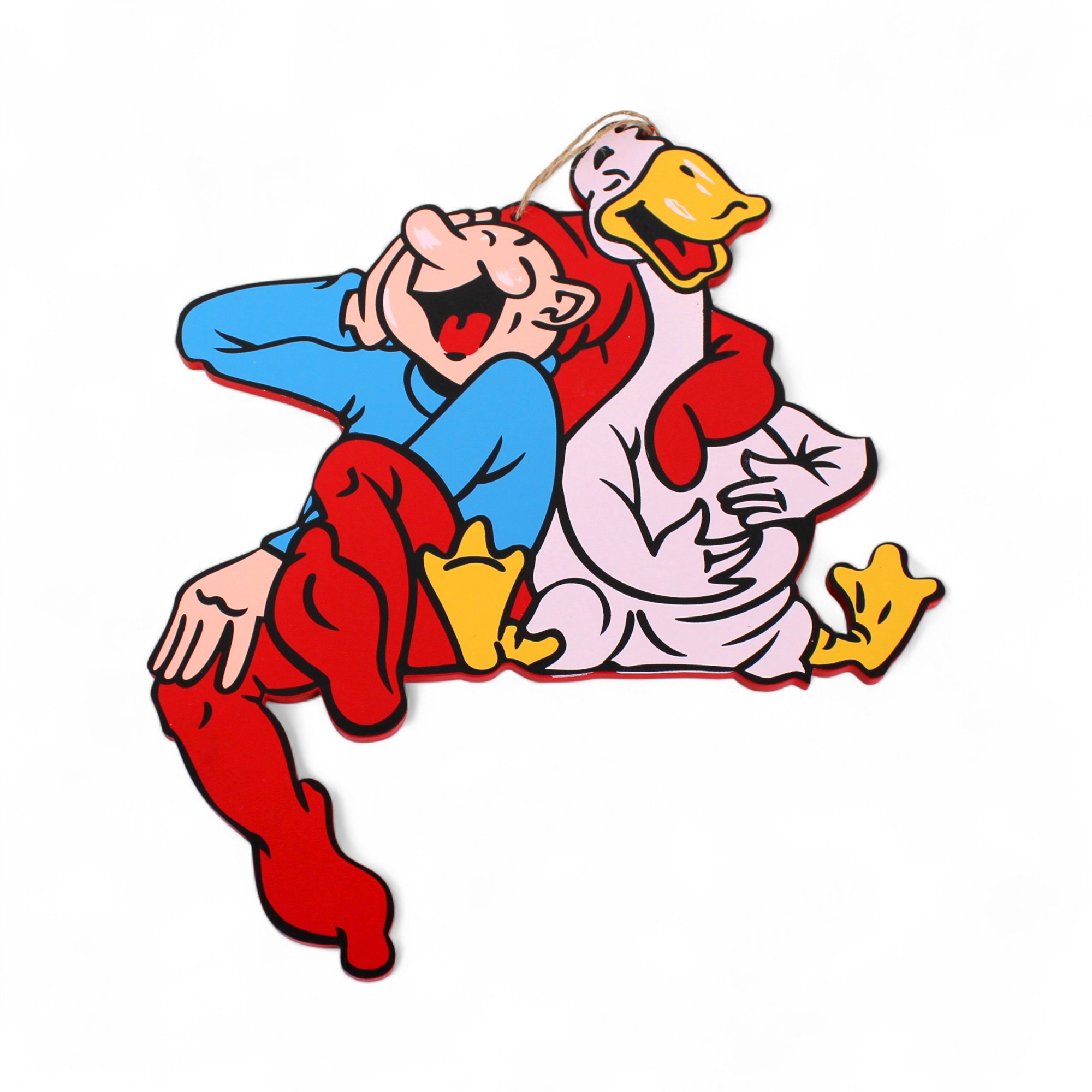 Bramming Wichtel aus Holz zum Aufhängen – 25 cm. Fröhlicher Wichtel in Blau mit Gans. Pobra Weihnachten