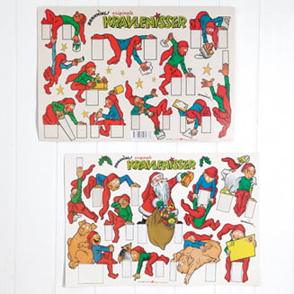 Die beliebten Bramming-Kletterwichtel, an die wir uns alle erinnern können. 2 Bögen in der Größe 30 x 40 cm in der Tüte. Bereit zum Ausschneiden.