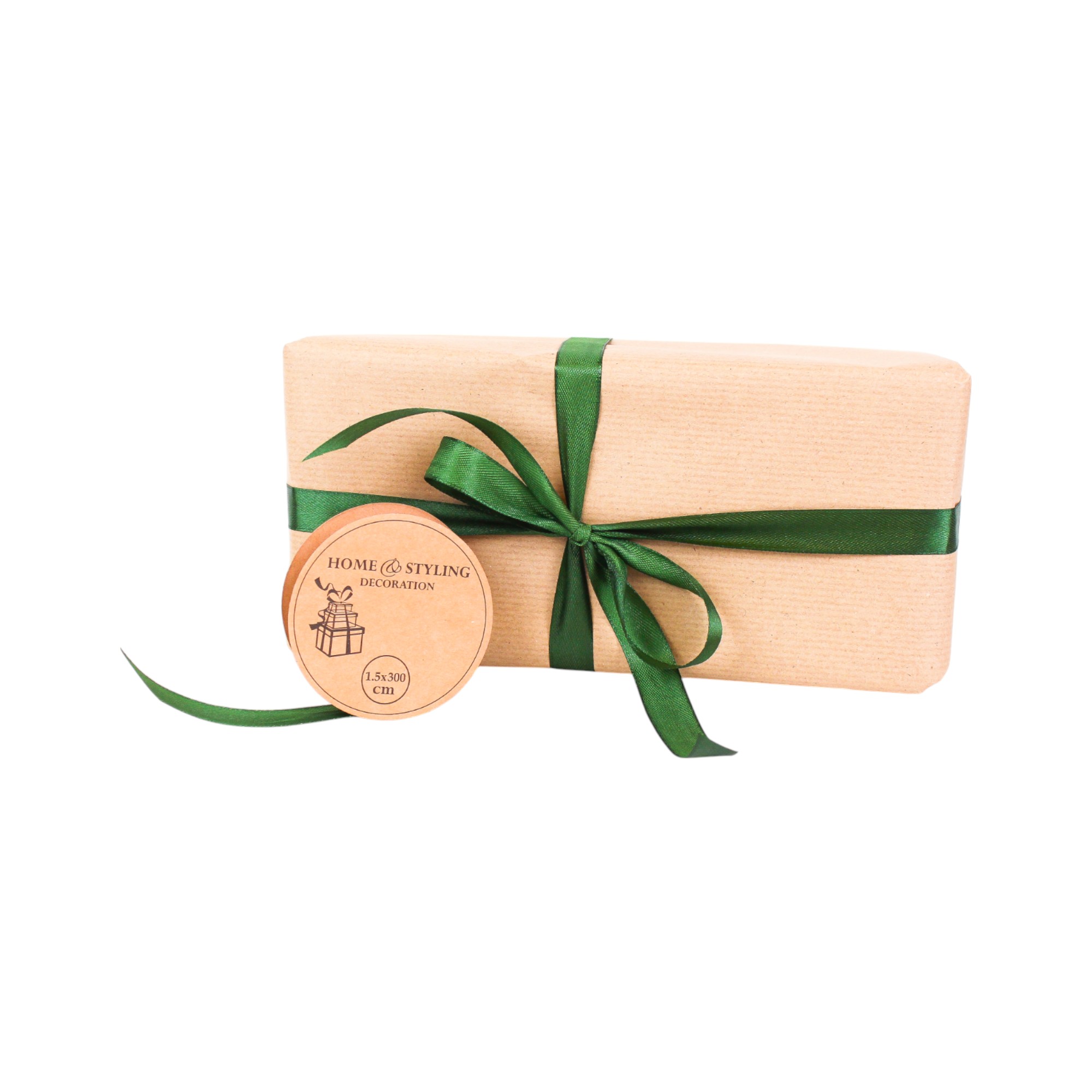 skinnende mørkegrønne gavebånd på rulle med 3 meter og 15 millimeter bred