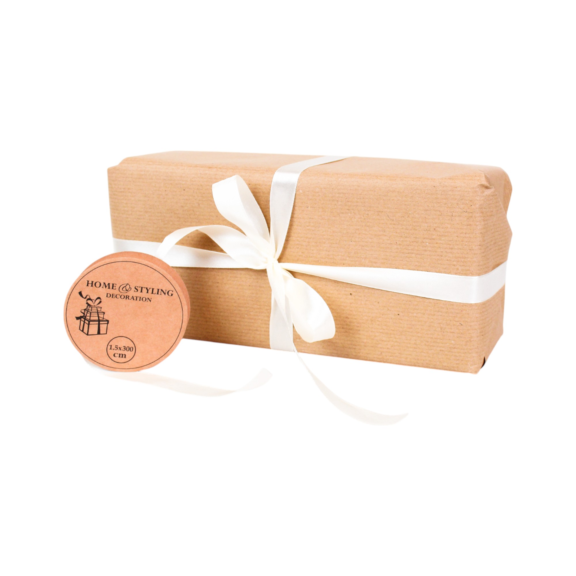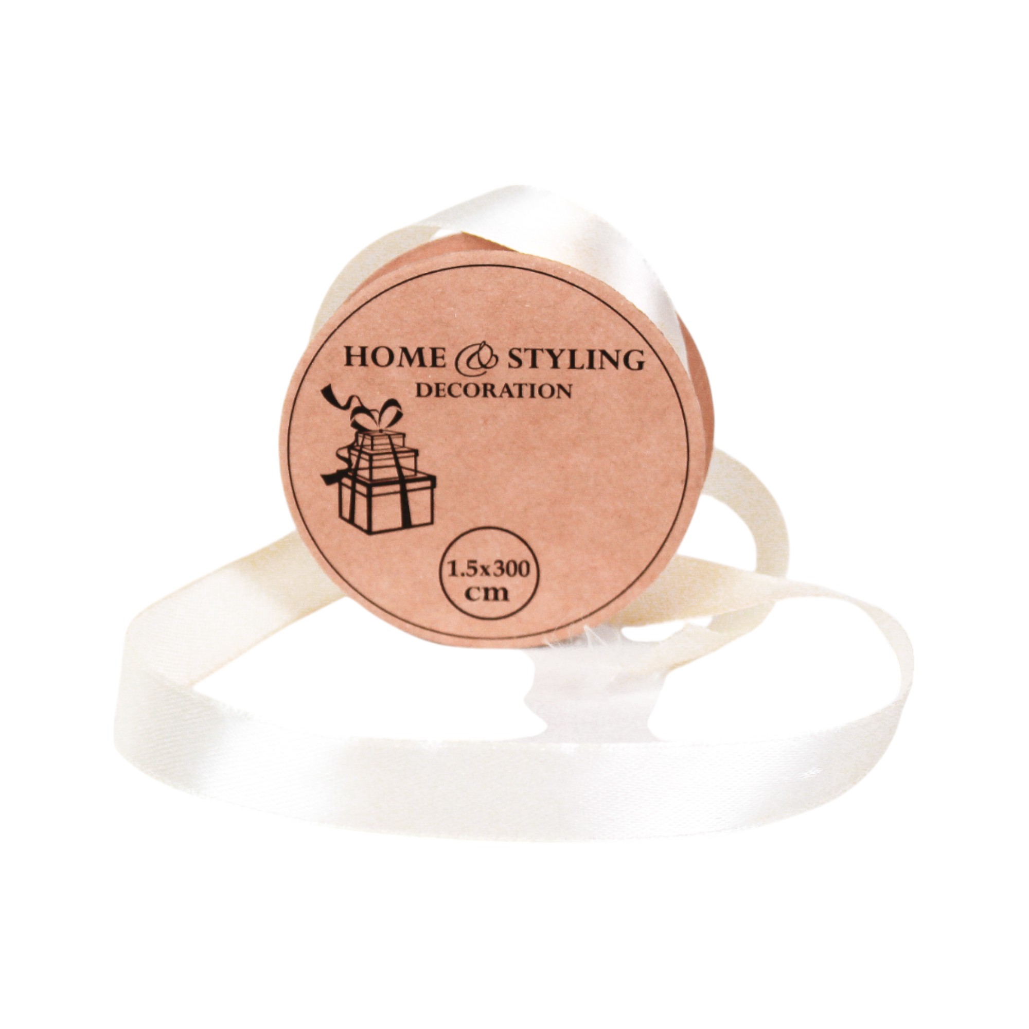skinnende cremefarvet gavebånd på rulle med 3 meter og 15 millimeter bred