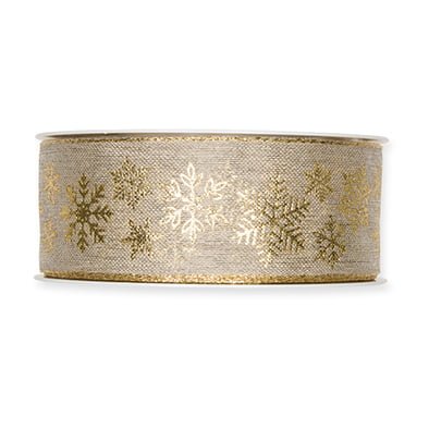 Dekorationsband mit Draht BEIGE mit GOLD Schneeflocken.