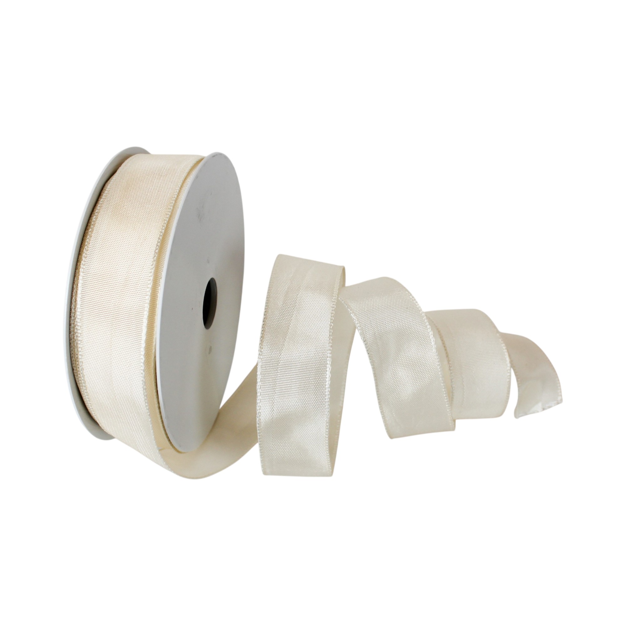 dekorationsbånd med tråd i sand råhvid farve på 25 millimeter x 25 meter