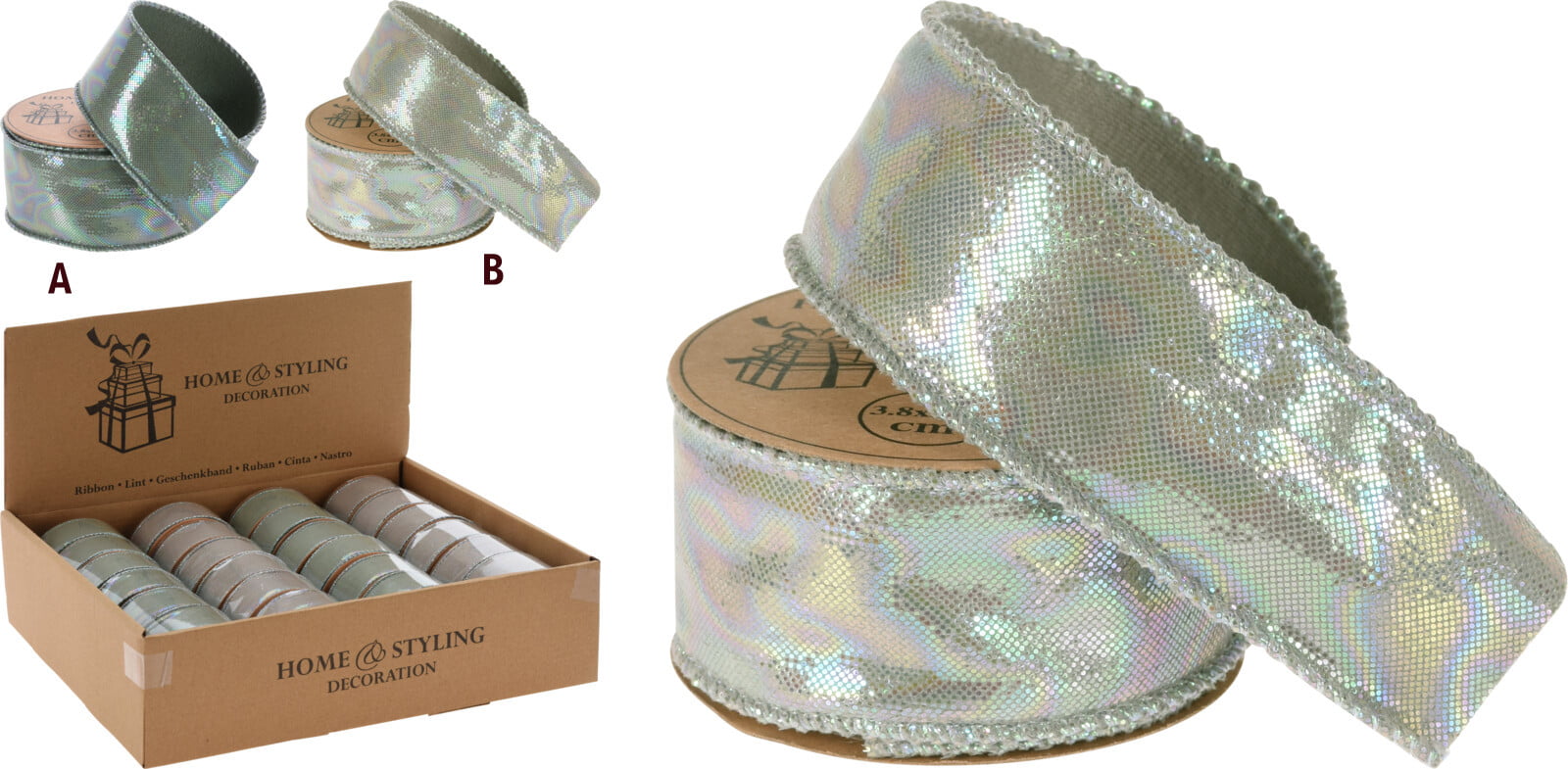 Dekorationsband mit Draht, silber changierende Farben, 38 mm.