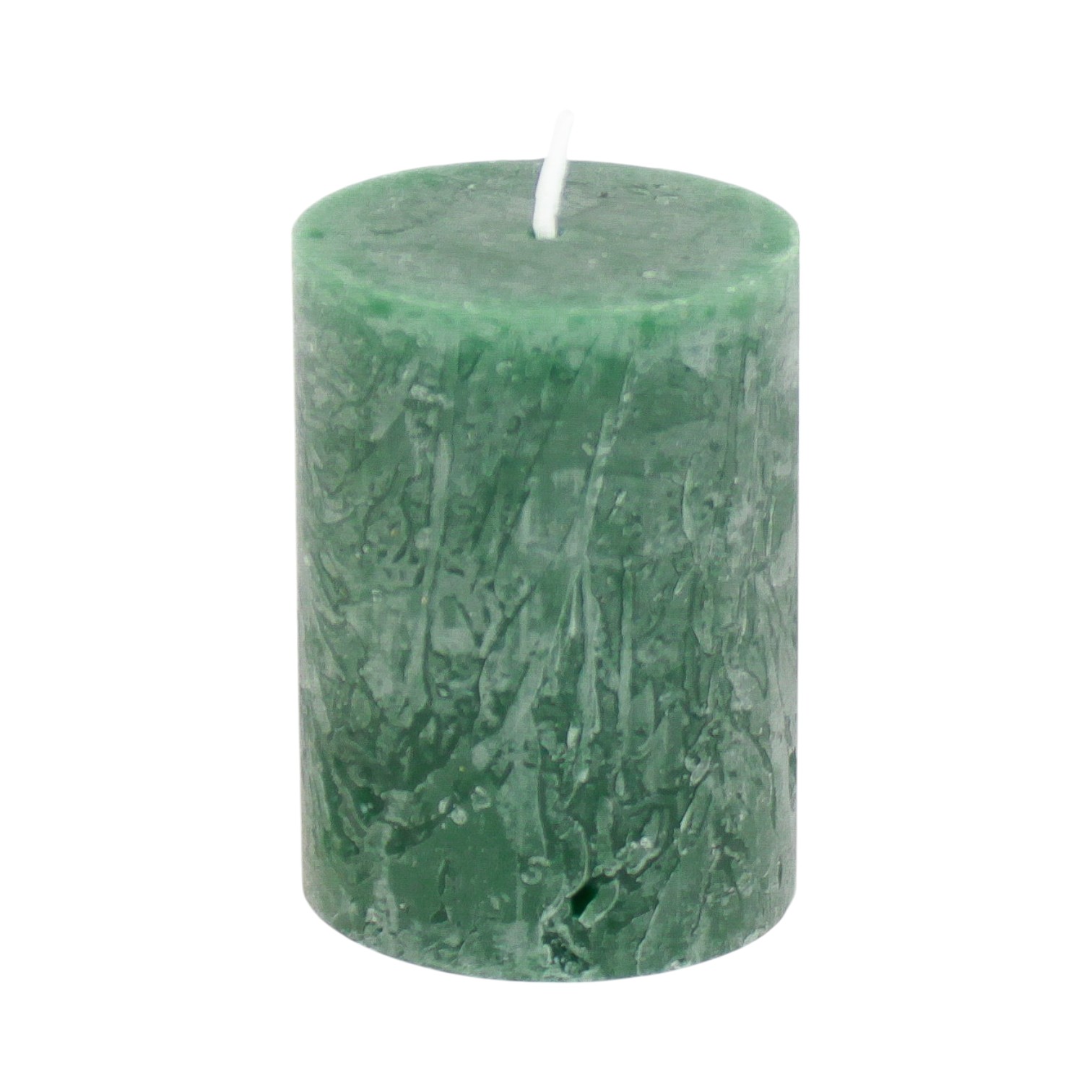DUNKELGRÜN LEINEN Rustikale Blockkerze, durchgefärbt 5,7 x 7,8 cm.