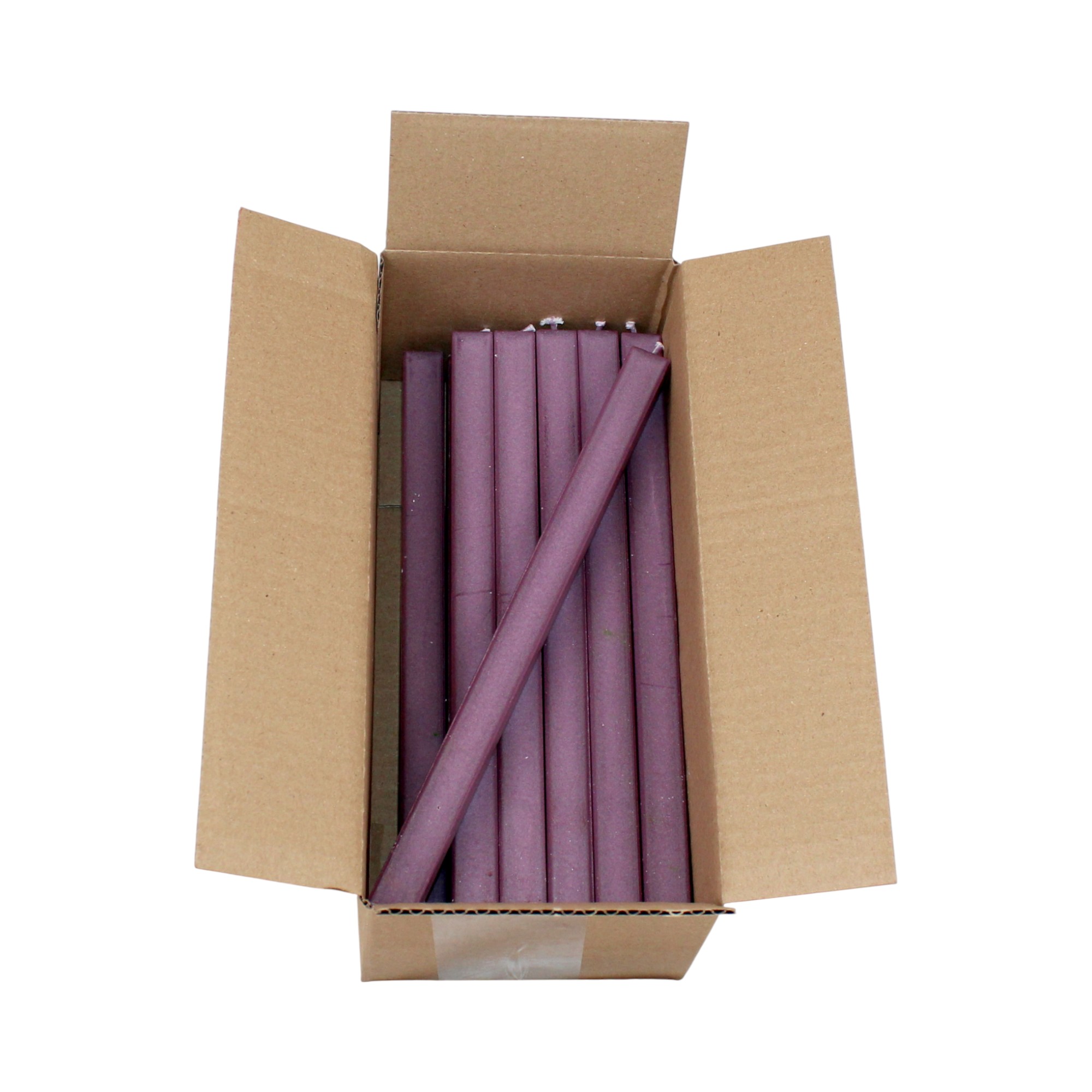 18 styk gennemfarvede blomme firkantede stagelys på 24 centimeter i 100% ren stearin