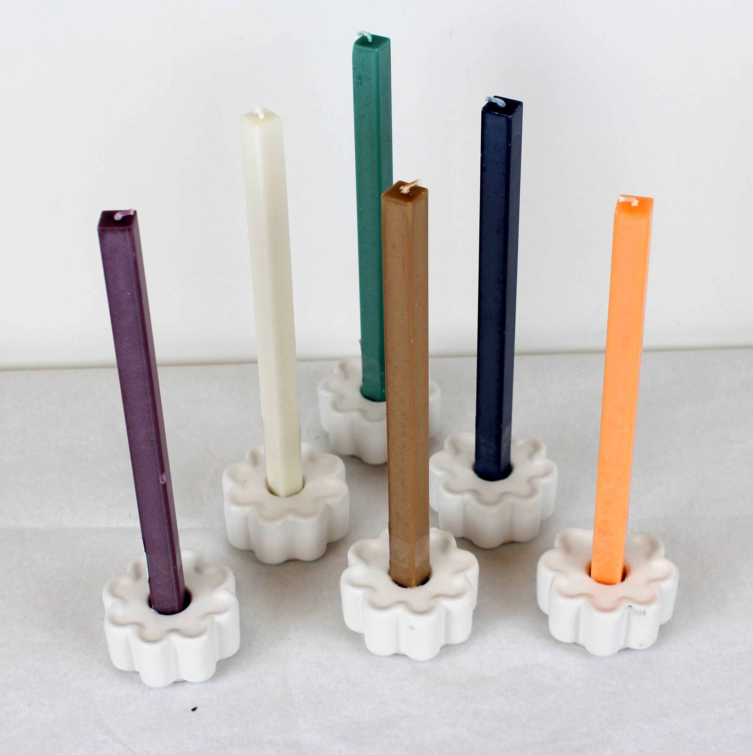 Die Stearinlichter sind durchgefärbt in pflaumenfarben mit mattem Look.
