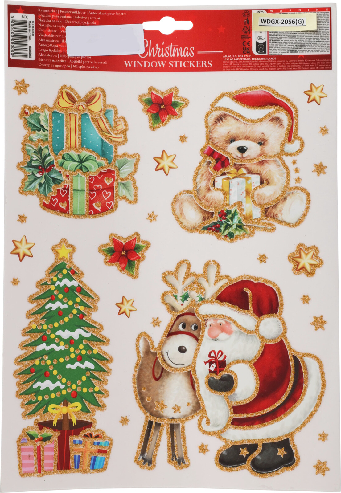 Fensteraufkleber, Weihnachts-Vinylaufkleber mit Geschenken, Teddybär, Weihnachtsbaum und Weihnachtsmann.