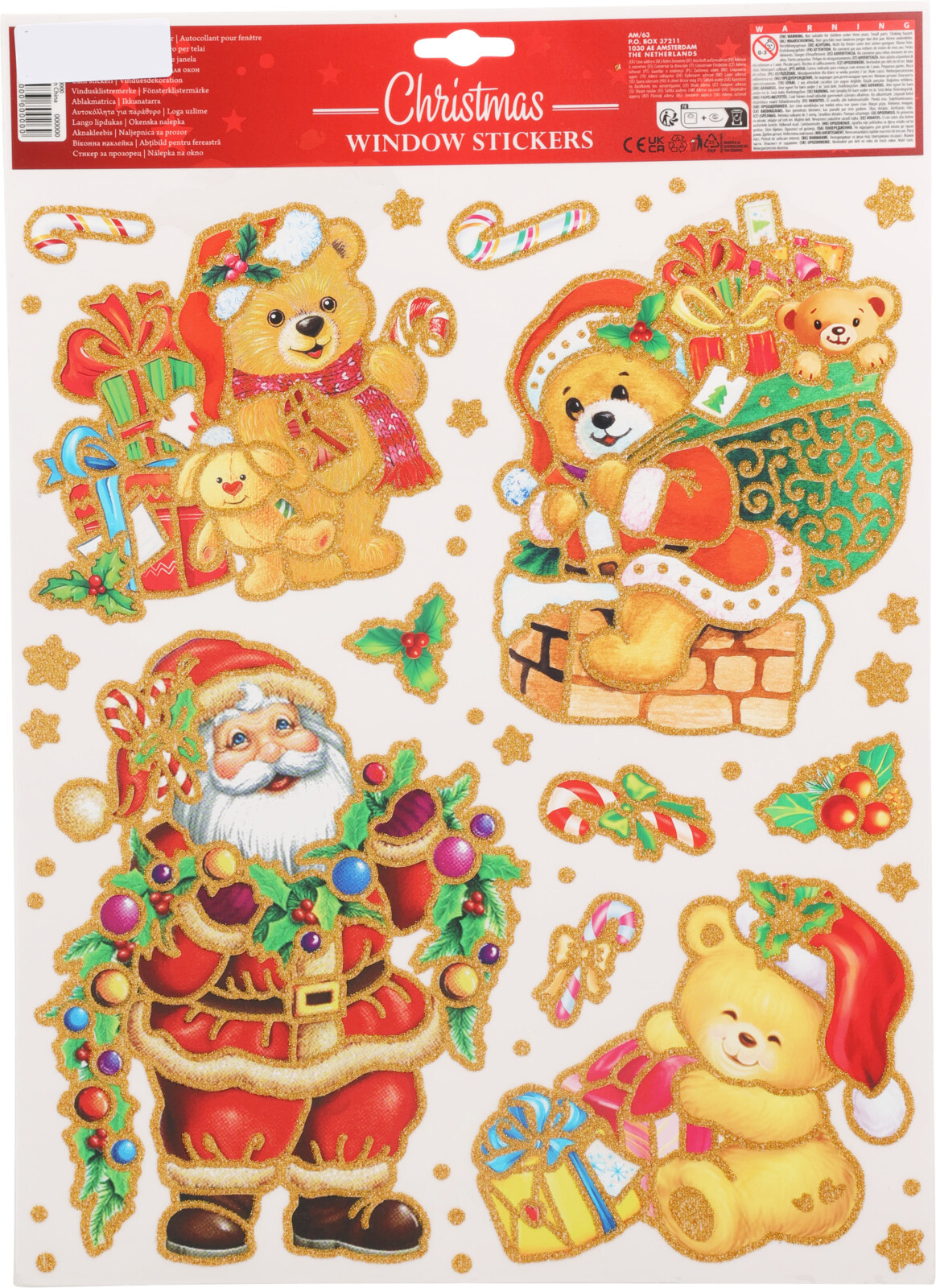 Fensteraufkleber, Weihnachts-Vinylaufkleber mit süßen Bären und Weihnachtsmann.