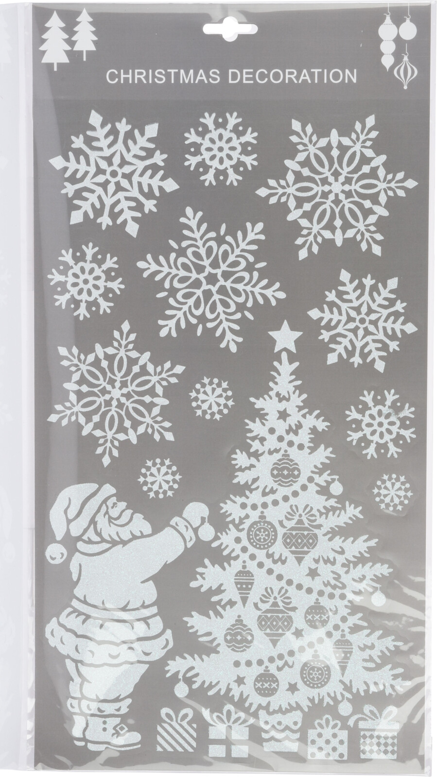 45 x 24 centimeter stor hvid klistermærkeark med glitter med julemand, juletræ og iskrystaller