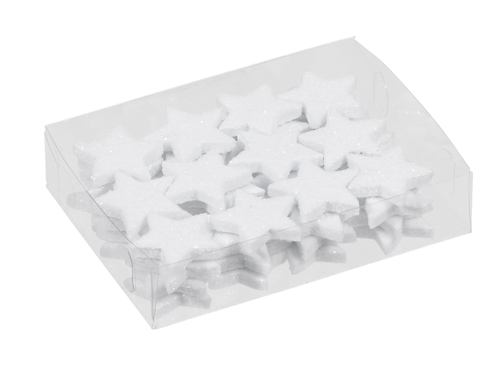 Die Glitzersterne in der Farbe Weiß messen: 2,5 cm im Durchmesser.
