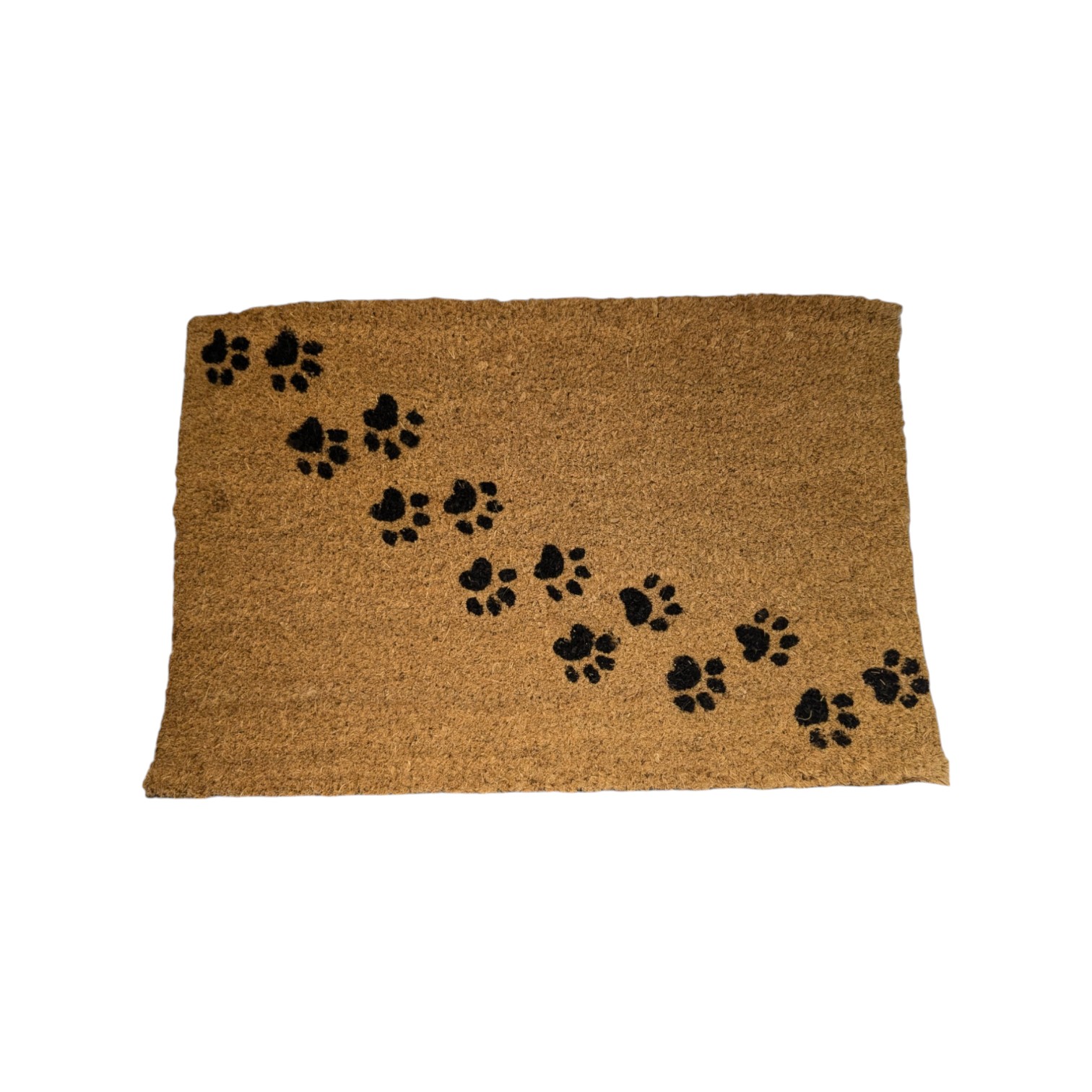 Fußmatte aus Kokos mit Katzenpfotenabdrücken. Misst 39 x 59 cm.