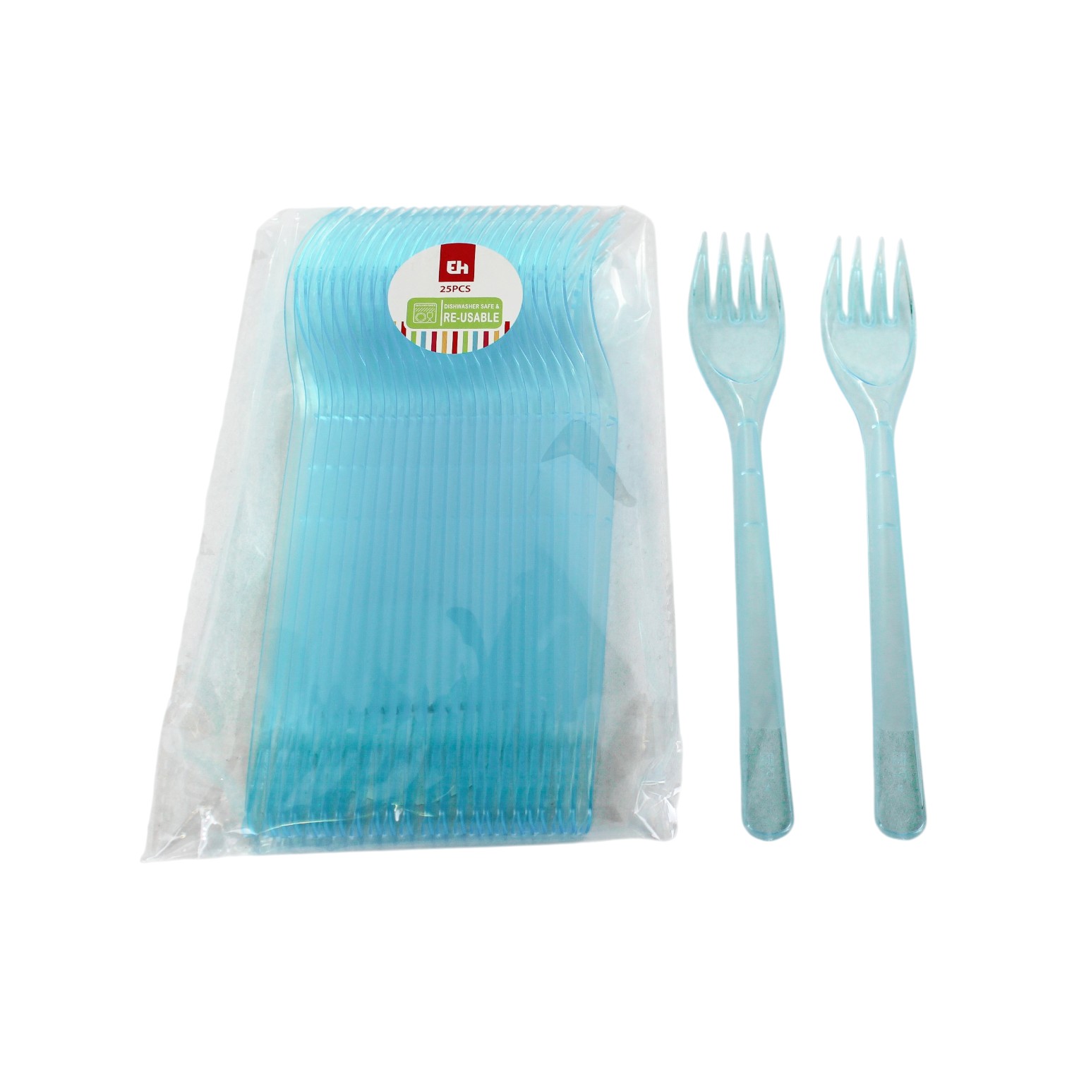Gabeln, Mehrweggeschirr, BLAU transparenter Kunststoff 17,5 cm (25 stk.)