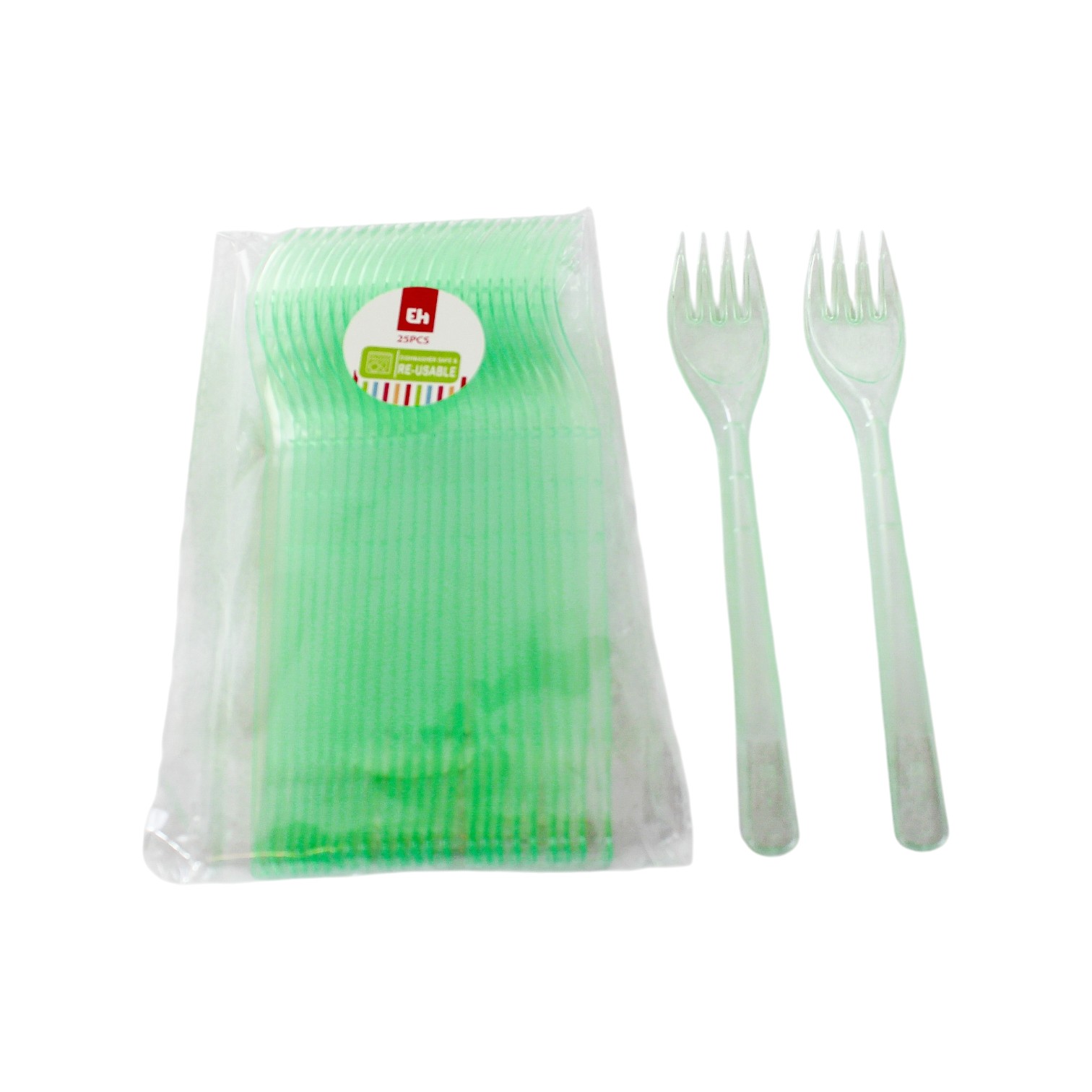 Gabeln aus grünem, wiederverwendbarem Kunststoff, spülmaschinenfest.