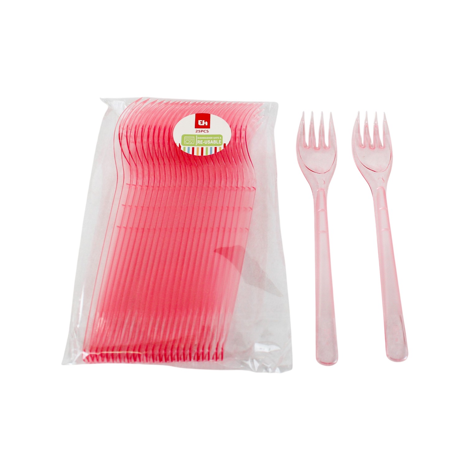 Gabeln aus rosa wiederverwendbarem Kunststoff, spülmaschinenfest.
