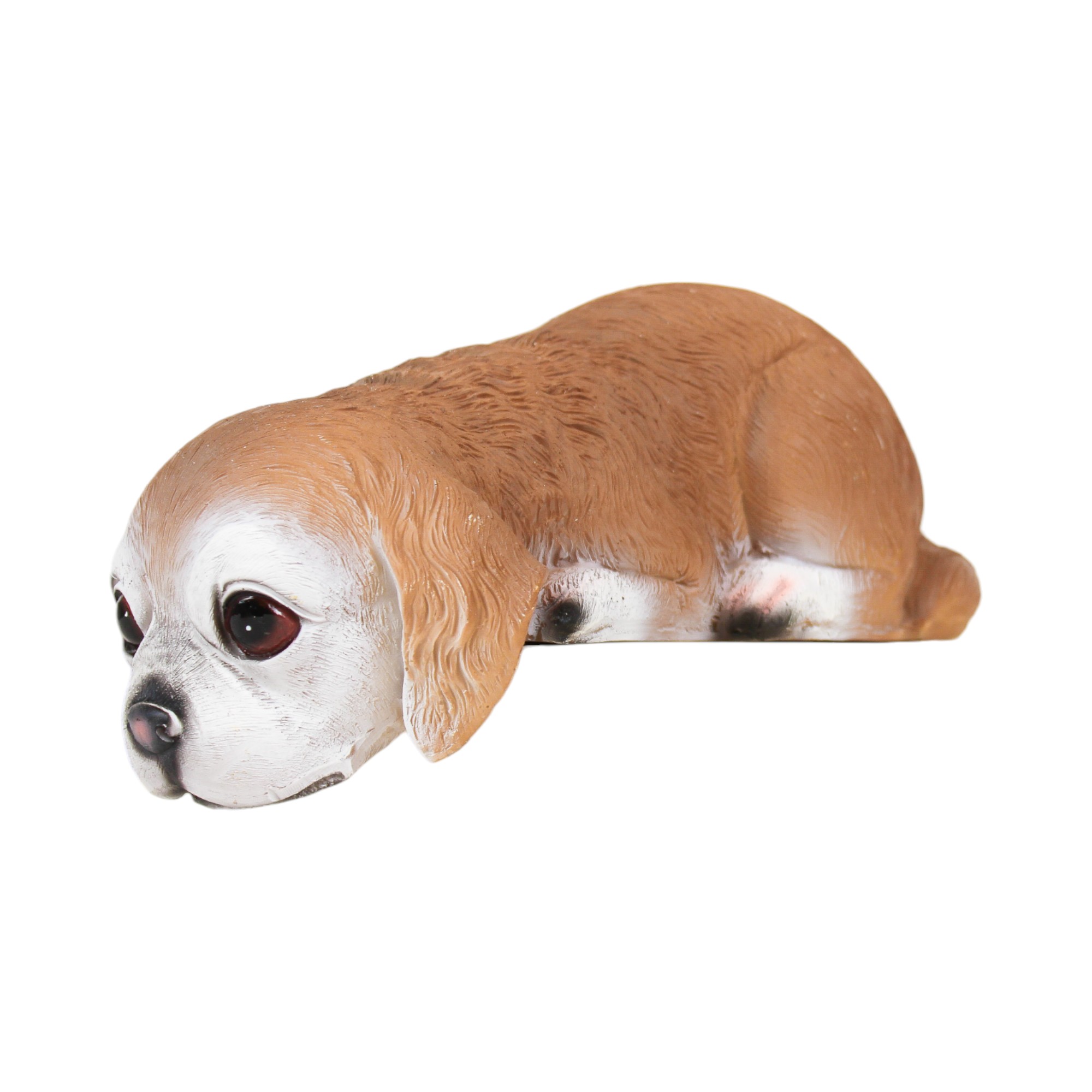 Gartenfigur Hund. 24 cm. Brauner, liegender Hund.
