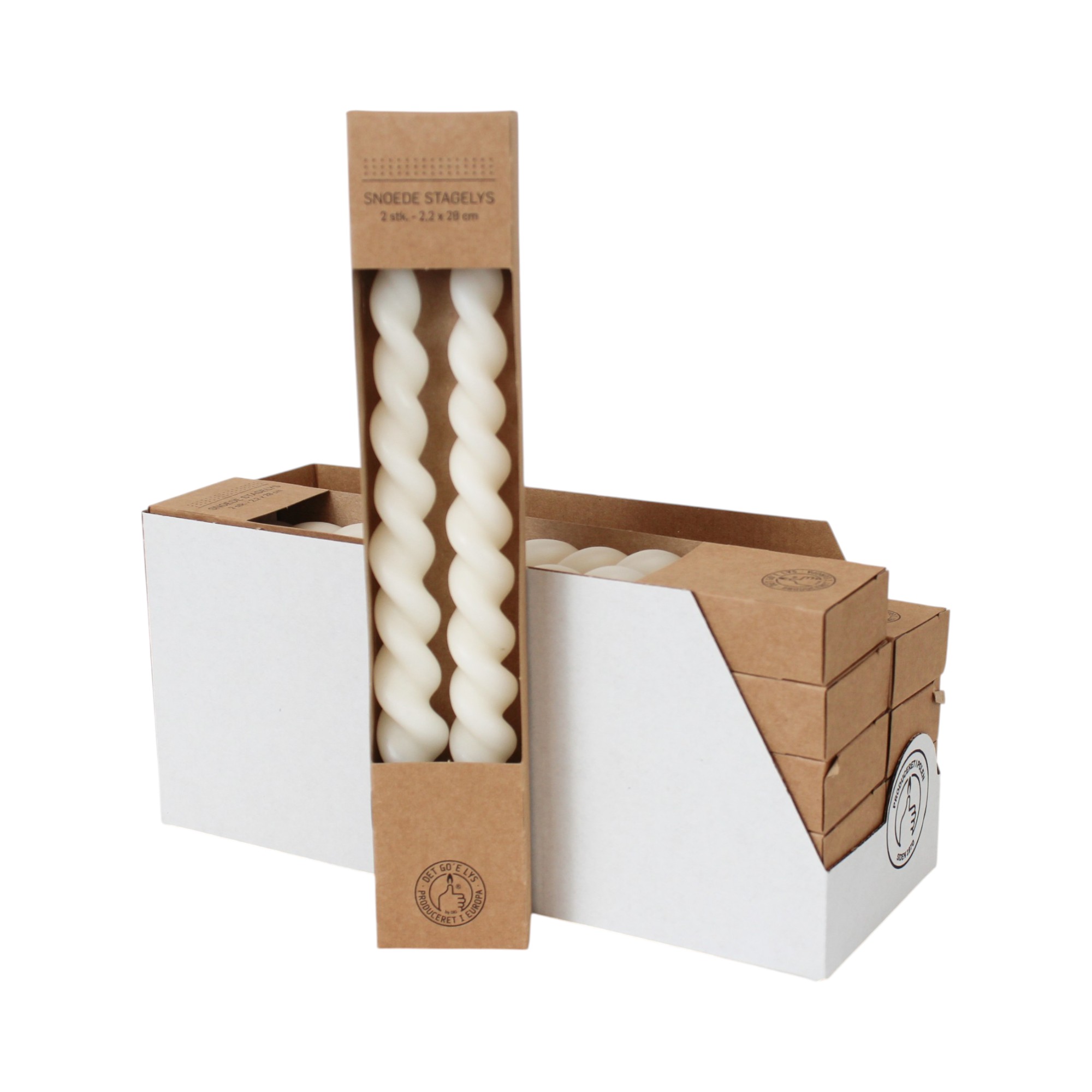 20 styk snoede råhvide stagelys med lav sodetal der måler 28 centimeter