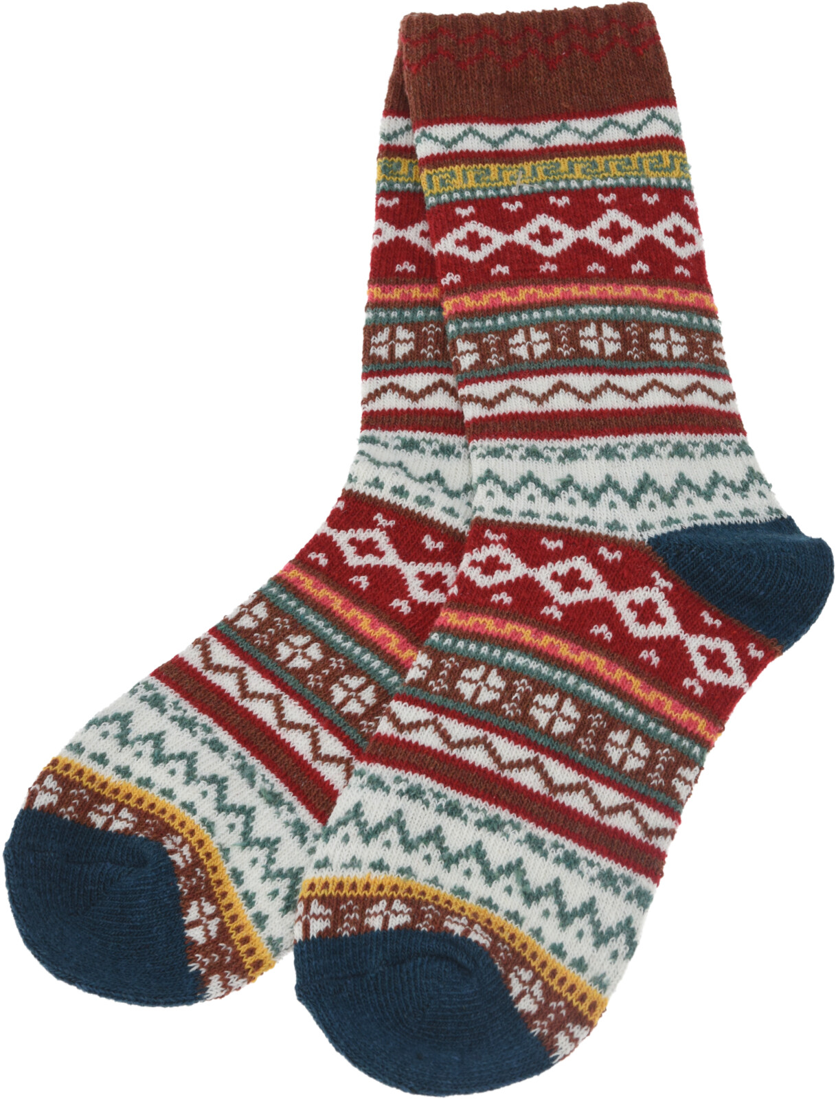 Damenstrümpfe in gemustertem Blau/Rot. Einheitsgröße.