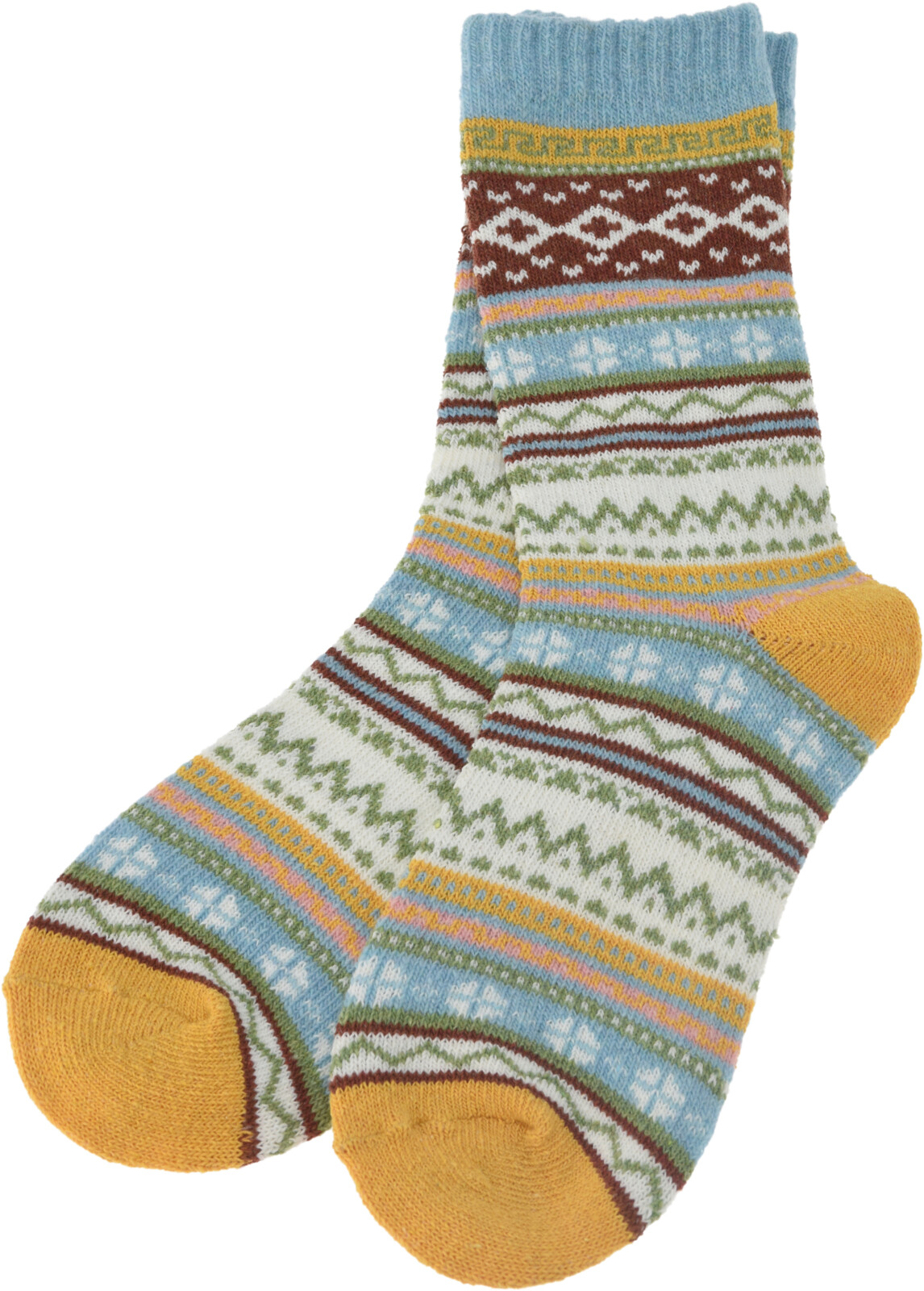 Damenstrümpfe in gemustertem Gelb/Blau. Einheitsgröße. Die Strümpfe sind gestreift in schönen Mustern mit Ferse und Zehen in einheitlicher Farbe. Die Socken haben eine perfekte Passform mit einem ca. 2,5 cm hohen Rippbündchen oben am Schaft. Die Fußlänge beträgt 20 cm. Perfektes Weihnachtskalendergeschenk oder Adventsgeschenk. Material: Polyester.
