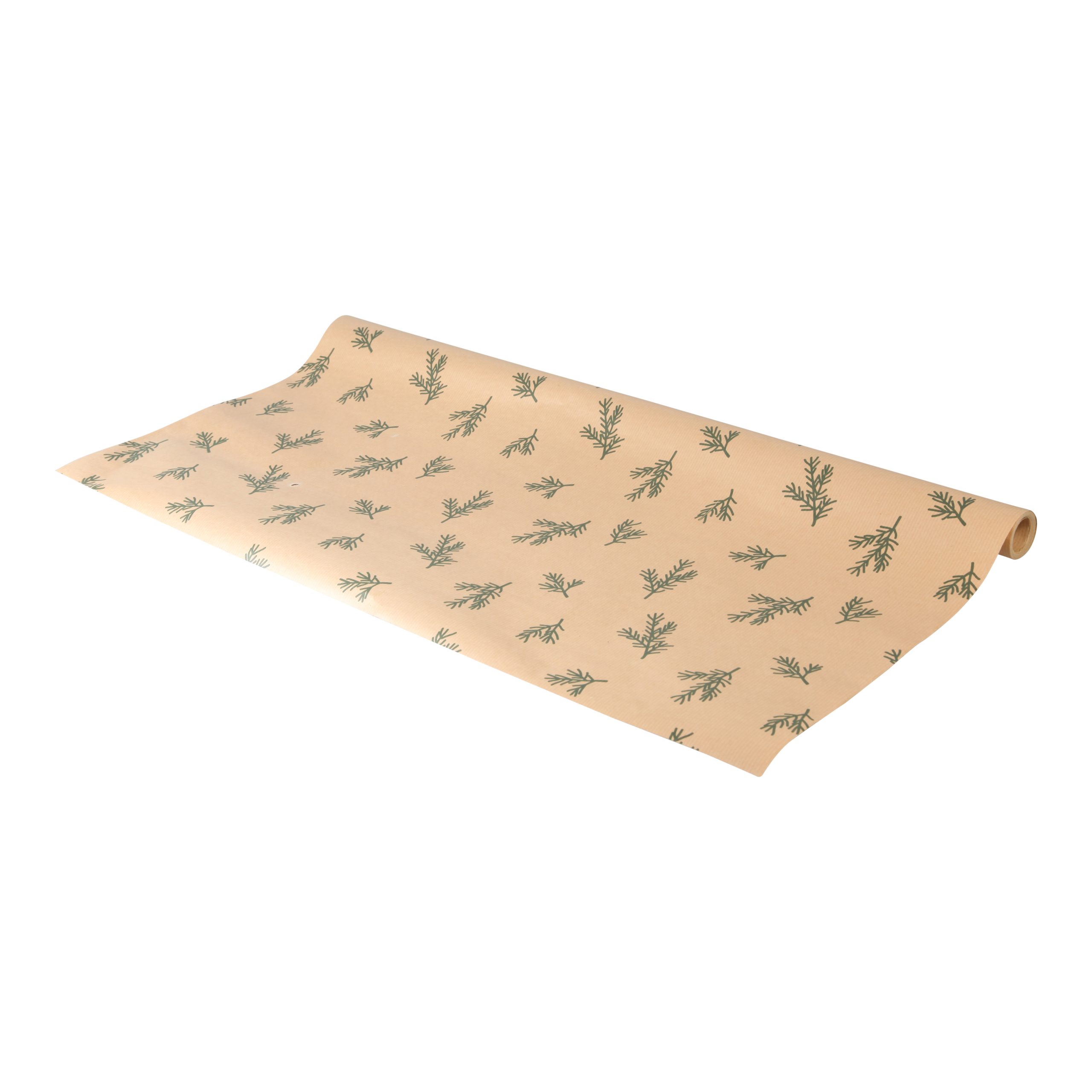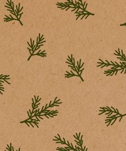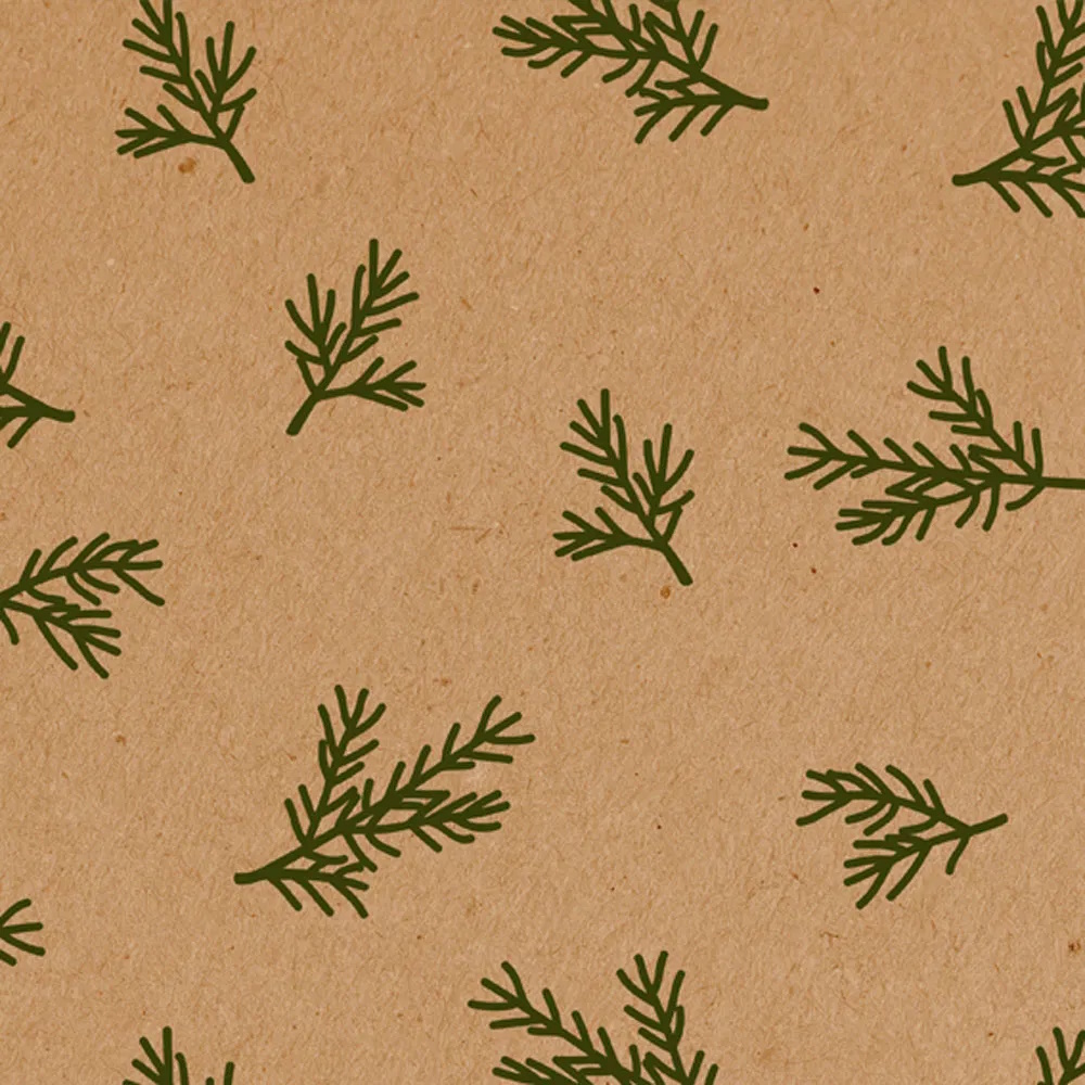 Geschenkpapier mit grünen Tannenzweigen auf braunem Hintergrund. Besonders starkes Geschenkpapier. FSC gekennzeichnet.