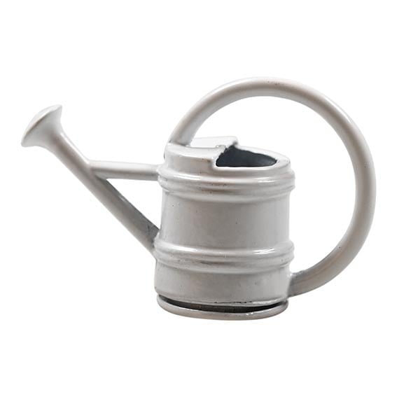 Die weiße Gießkanne ist eine genaue Nachbildung einer gewöhnlichen Gießkanne.