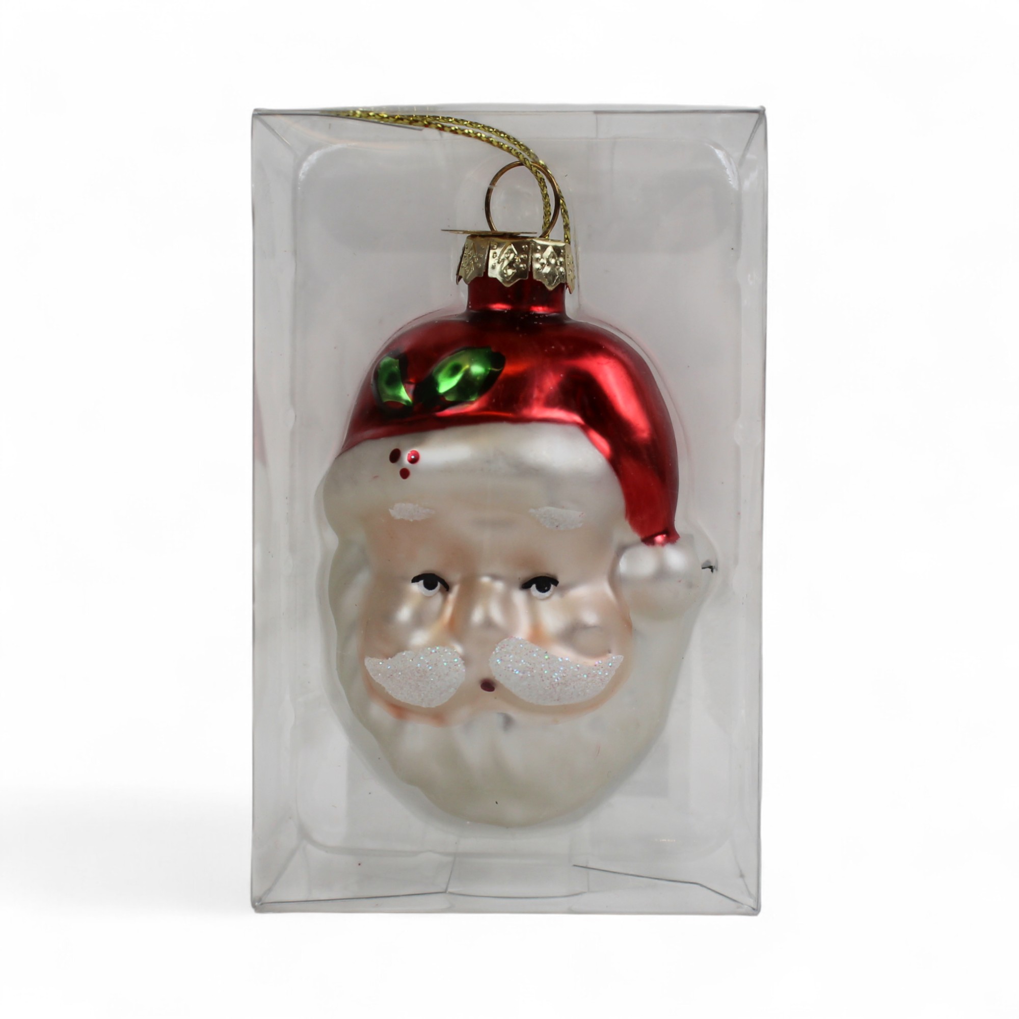 glasfigur som julemandshoved er sjov juletræspynt der måler 5 centimeter i diameter