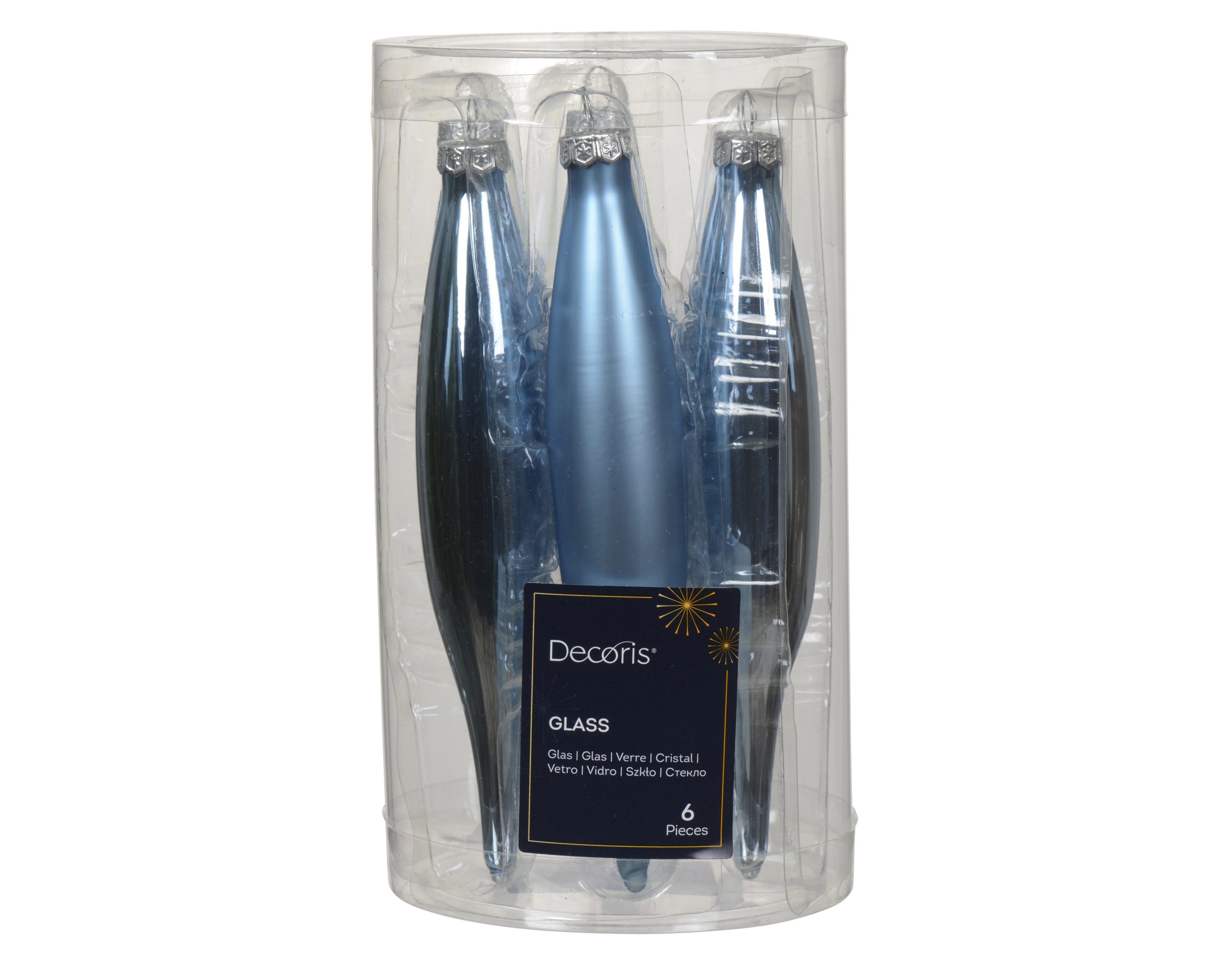 Die Schachtel enthält HELLBLAUE Weihnachtskugeln Eiszapfen für deinen Weihnachtsbaum. 6 Stk. Durchmesser 3 cm. Länge 15 cm. Glasstropfen in Gold für deinen Weihnachtsbaum. 3 Stk. mit glänzender Oberfläche + 3 Stk. mit einer matten Oberfläche. Schmücke deinen Weihnachtsbaum mit diesen Eiszapfen oder einem Ast, der von der Decke hängt. Wähle ein Farbthema oder mische mit den anderen Farben, die wir auch verkaufen.