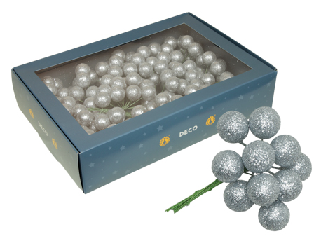 Funkelnde SILBERNE Glitterkugeln auf Draht. 18 Bdt. á 10 Stk.