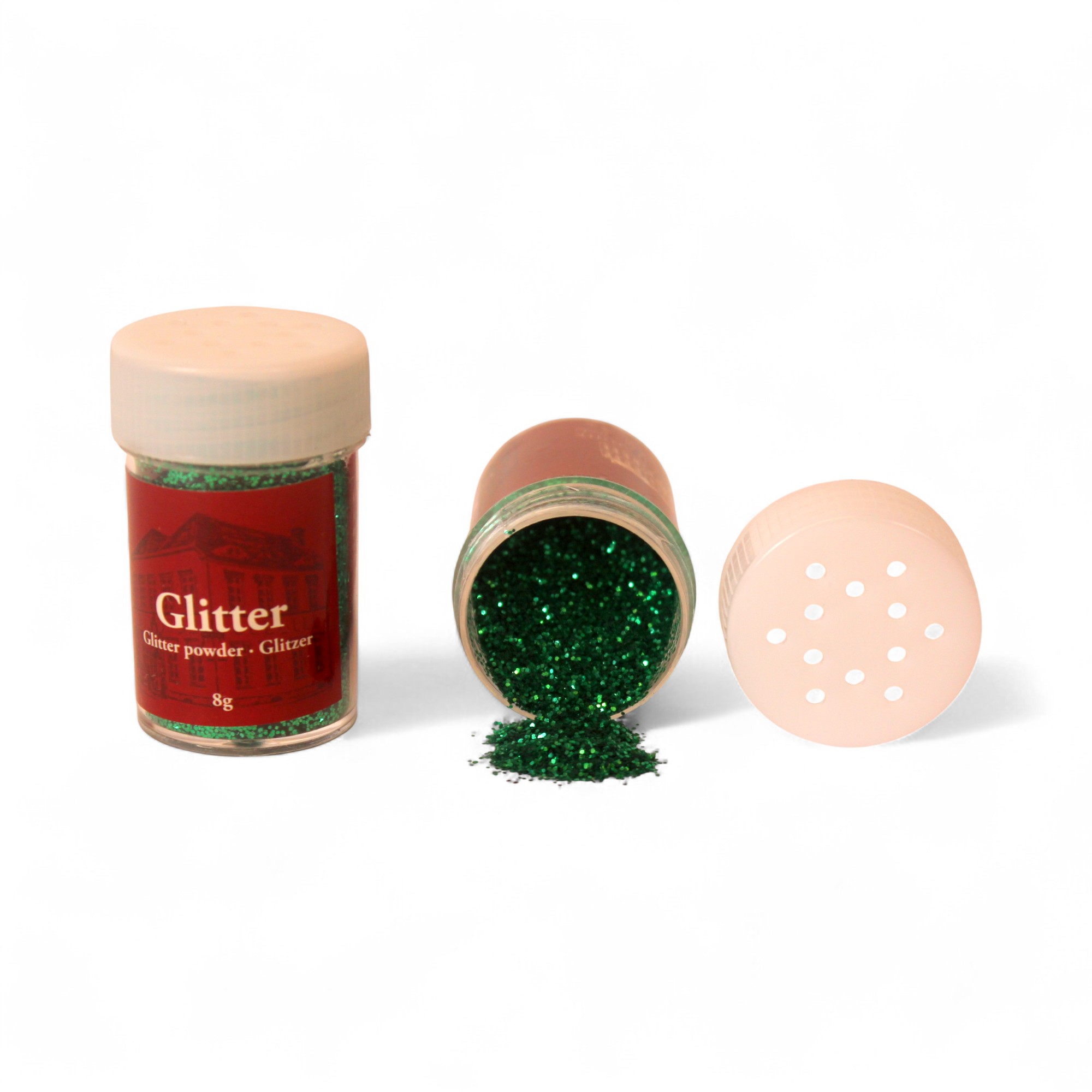 Glitzerpulver, kleine Sterne in grün, 8 gr. pro Dose.