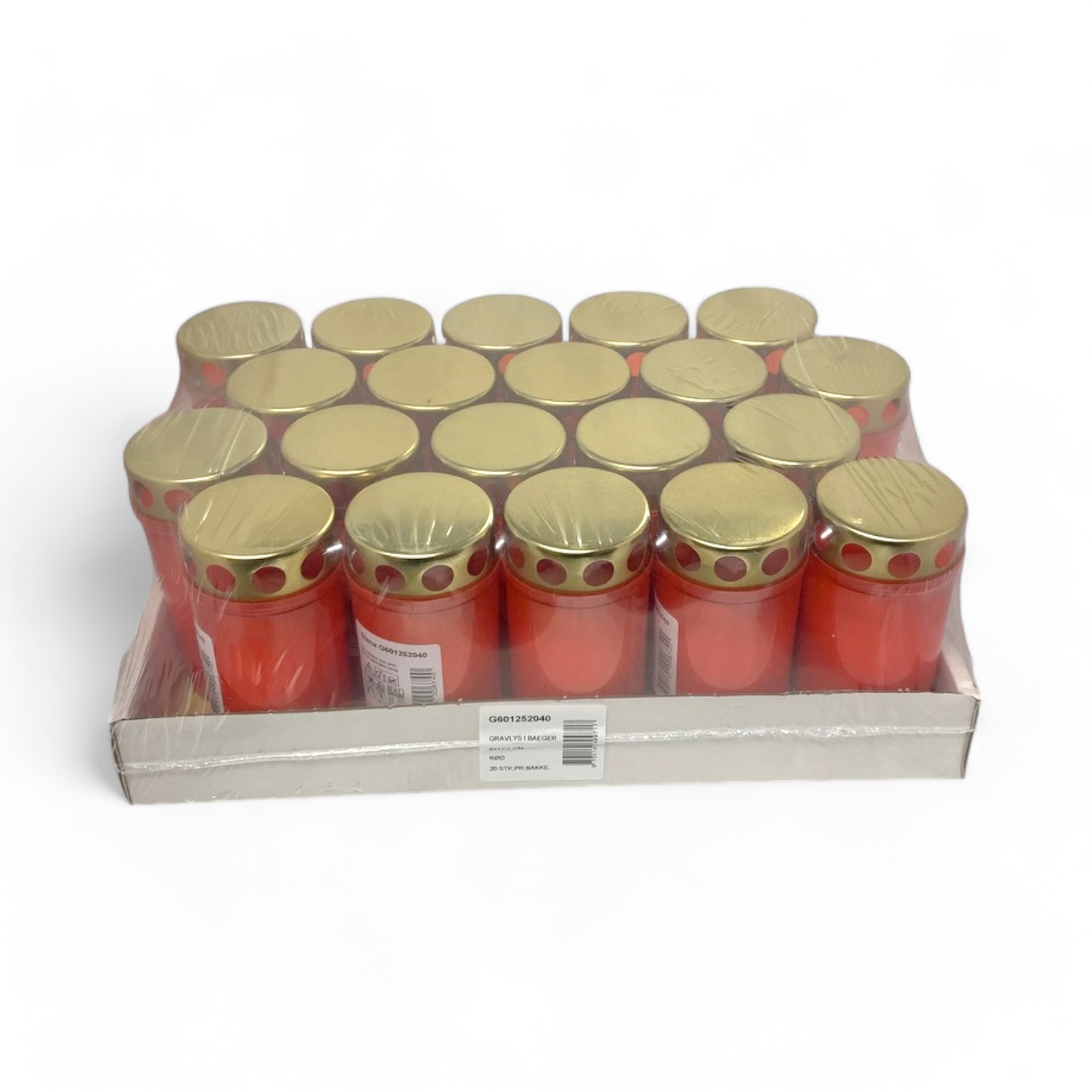 Grablichter rot mit Golddeckel – Friedhofslichter mit langer Brenndauer. Kiste à 20 Stück.