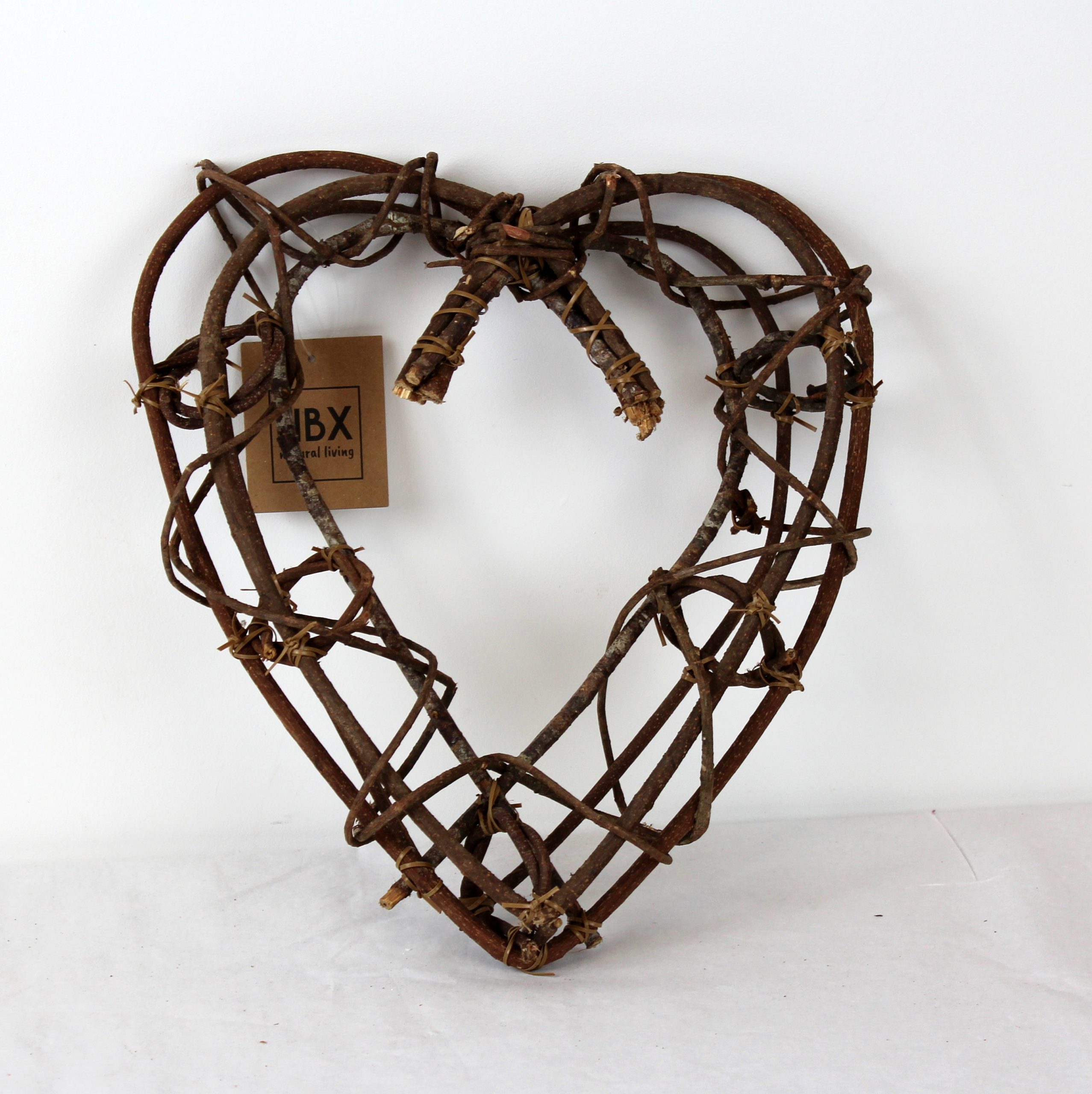 Herzförmiger Kranz aus Weinreben. Naturfarben.