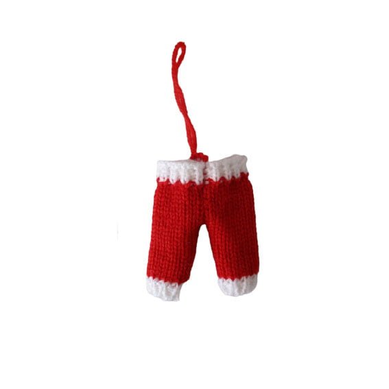 Hosen für Wichtel. Rot mit weißen Rändern. Gestrickte Wichtelkleidung.
