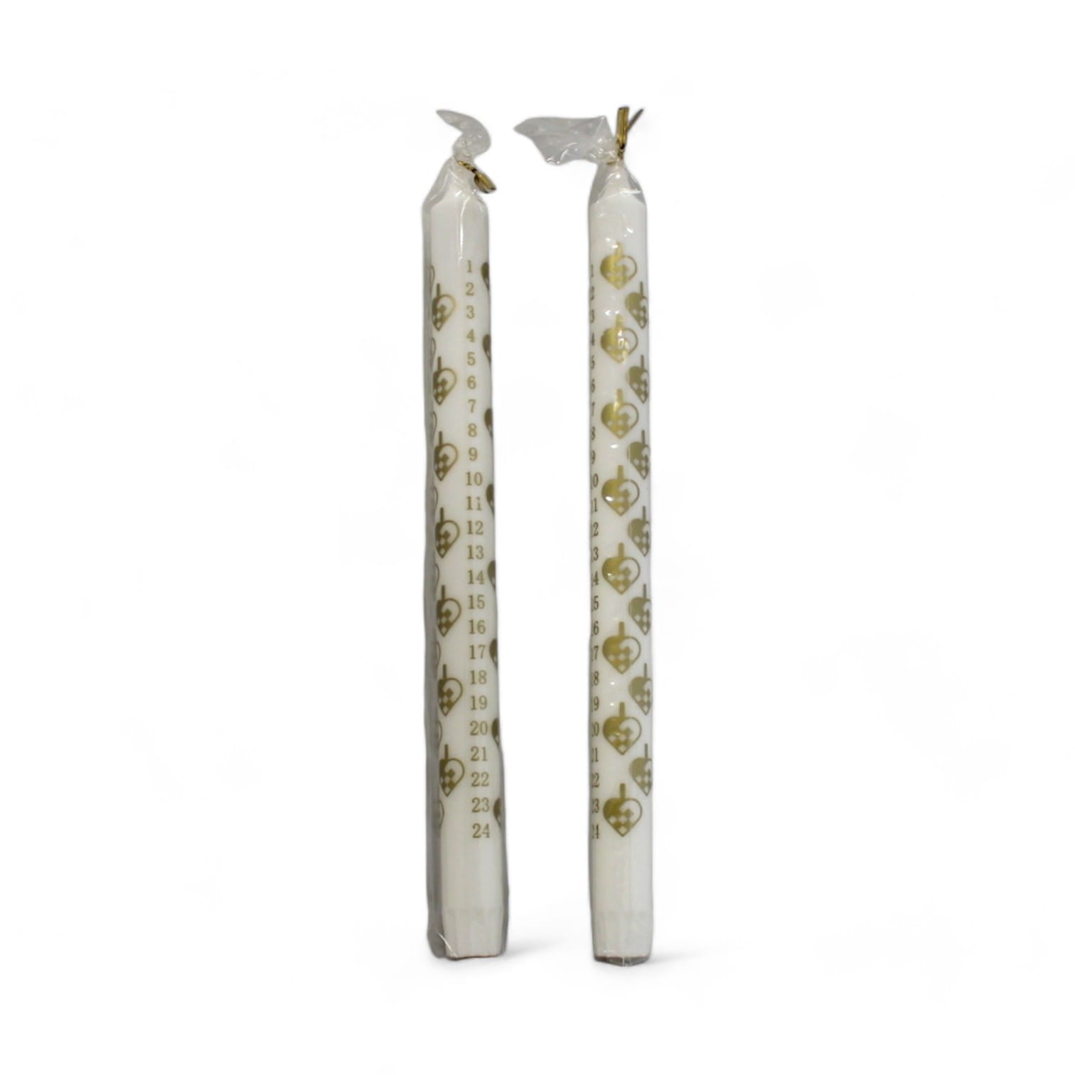 Wie soll Ihre Adventskerze dieses Jahr sein? Soll sie dick oder dünn sein? Rot oder weiß? Bei uns finden Sie alle Arten von Adventskerzen – es gibt sicherlich auch eine Adventskerze für Sie. Wenn Sie Ihre Adventskerze auswählen, sollten Sie darüber nachdenken, wie viele Brennstunden die Adventskerze haben soll. Wir haben Adventskerzen als normale Stabkerzen, Adventskerzen in Kegelform, Adventskerzen in Glas, Adventskerzen mit einem Durchmesser von 3 cm, Adventskerzen als Blockkerzen mit einem Durchmesser von 5 cm und bis zu den ganz großen und dicken Adventskerzen mit einem Durchmesser von 8 cm. Wenn Sie die gewünschte Adventskerze nicht finden können, können Sie ganz einfach selbst Adventszahlen auf eine Kerze setzen. Sie können Ihre eigene Adventskerze herstellen, indem Sie einen Zahlenstreifen verwenden. Die 24 Zahlen dienen als Übertragungszahlen für Kerzen. Wir haben über 10 verschiedene Zahlenstreifen mit schwarzen, roten, silbernen und goldenen Zahlen, so dass es viele Möglichkeiten gibt, etwas Passendes sowohl für Ihren Stil als auch für die Kerze zu finden, die Sie auf den Streifen setzen möchten.