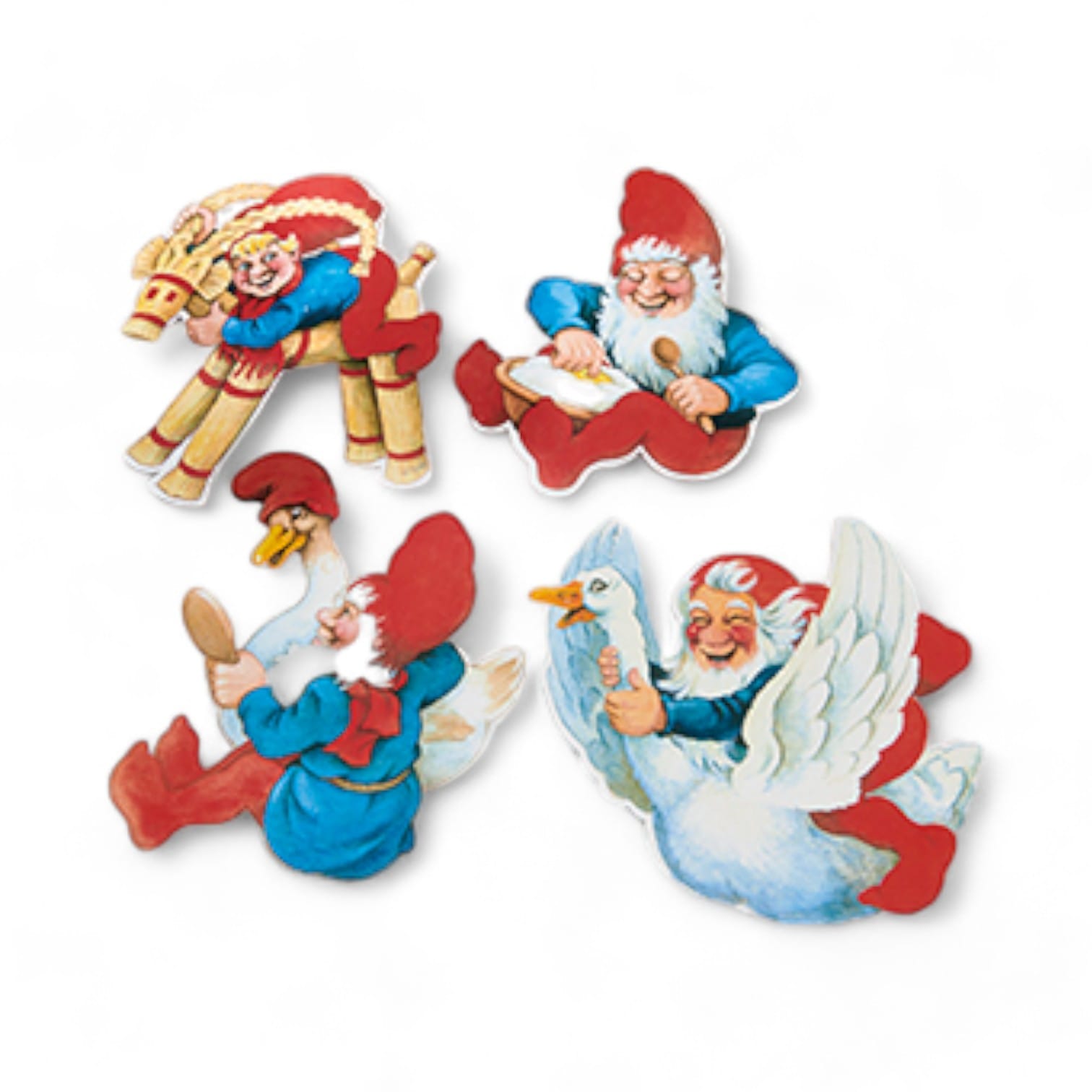 Karton-Weihnachtsmänner von Vilhelm Hansen – 30 cm. 4 Stück pro Beutel. Die vier verschiedenen fröhlichen Weihnachtsmannfiguren sind mit Gänsen, Milchreis und Weihnachtsbock. Zum Aufhängen und als Weihnachtsschmuck wie Kletterweihnachtsmänner. Beidseitig bedruckt. Gute Idee für Adventskalendergeschenke und Wichtelspiele. Auch in einer kleineren Ausgabe erhältlich.