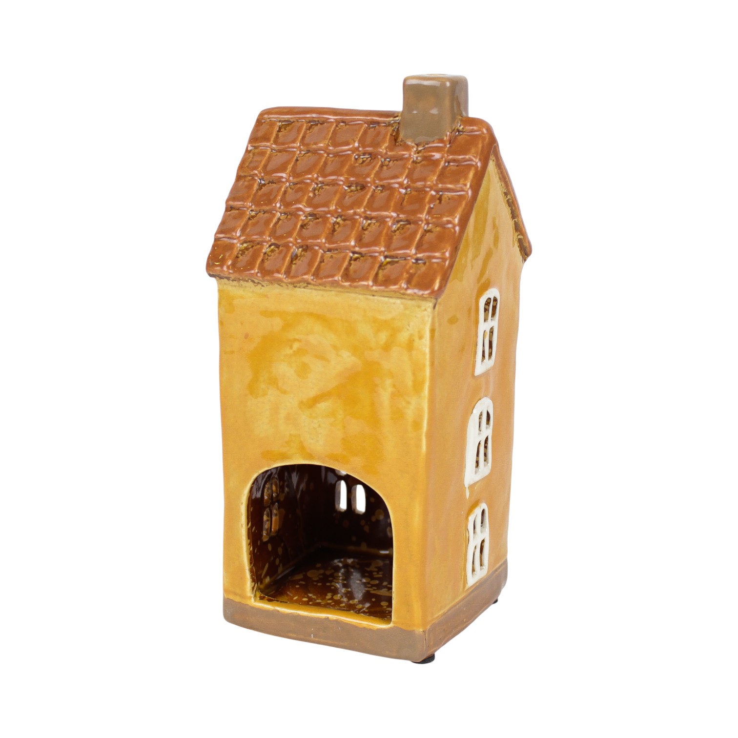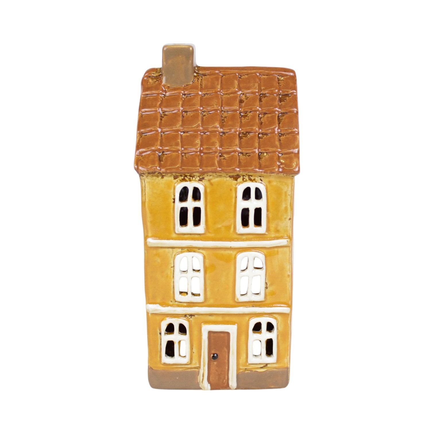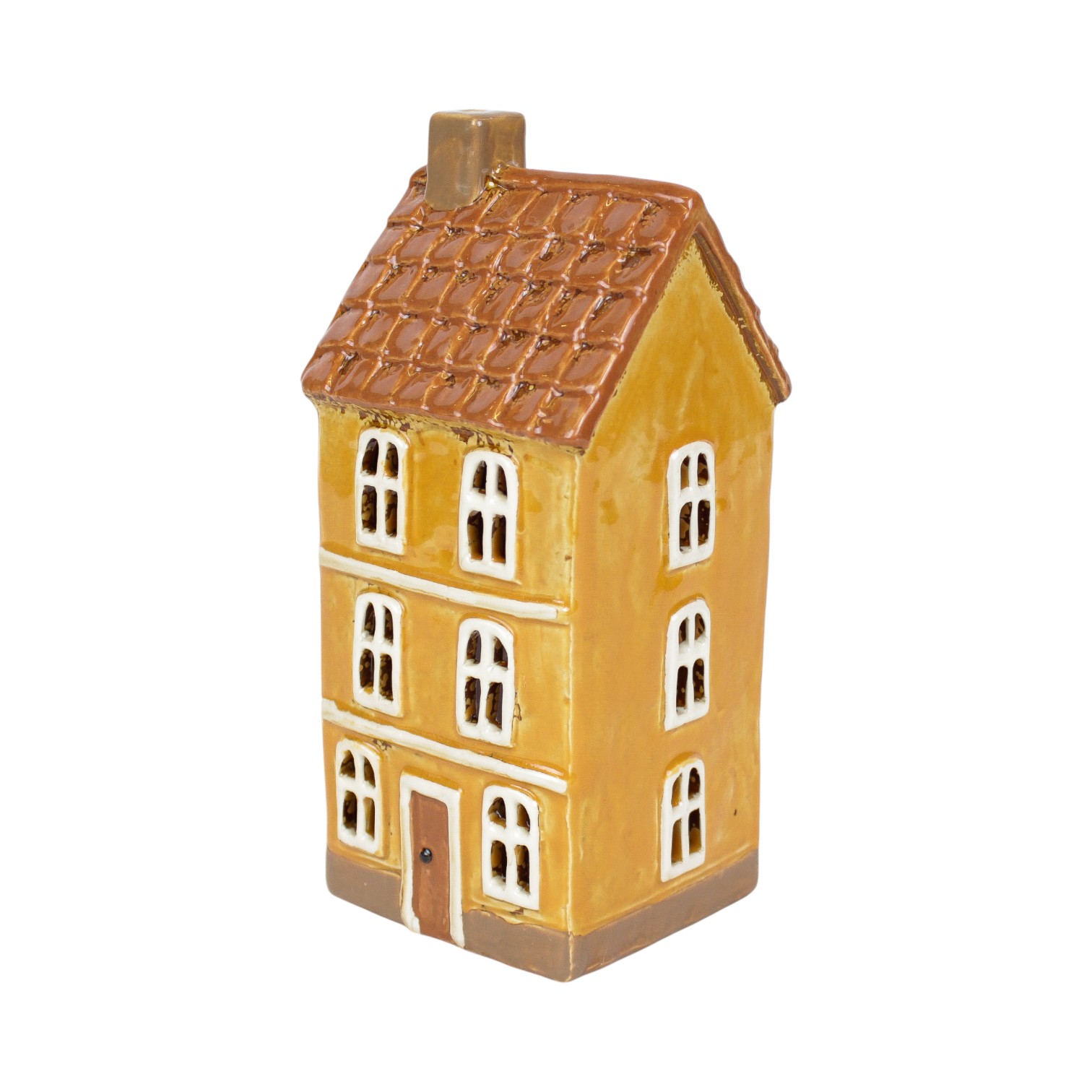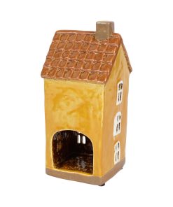 Keramikhaus für Teelichter, gelbes Hochhaus