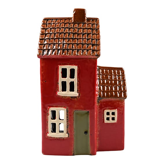 Keramikhaus für Teelichter. Rotes Hochhaus 20 x 12 x 8 cm.
