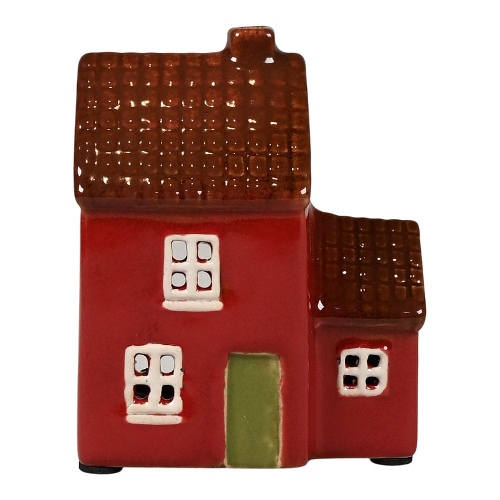 Keramikhaus für Teelichter. Rotes kleines Haus 10 x 8 x 6 cm.