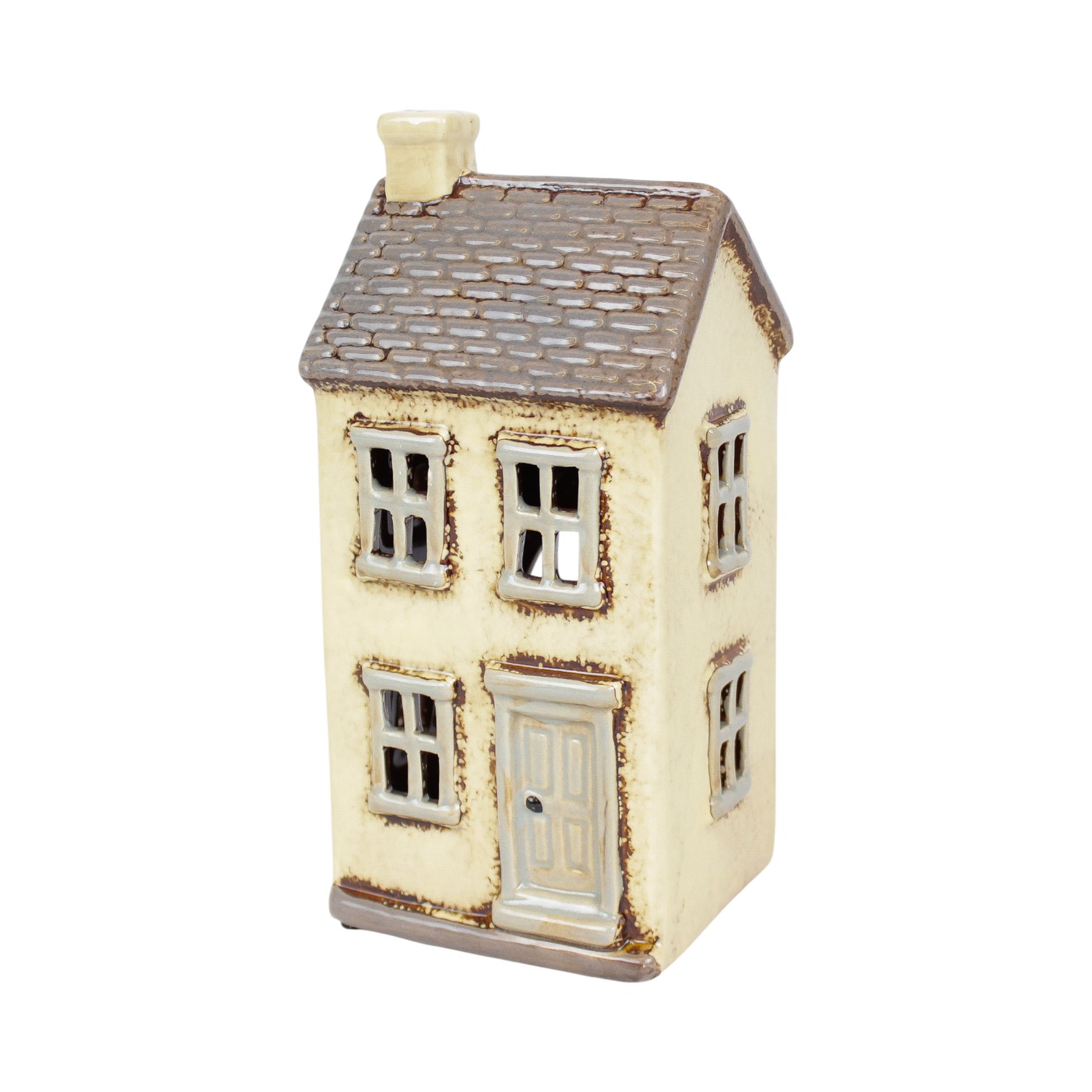 Keramikhaus für Teelichter, weißes Hochhaus