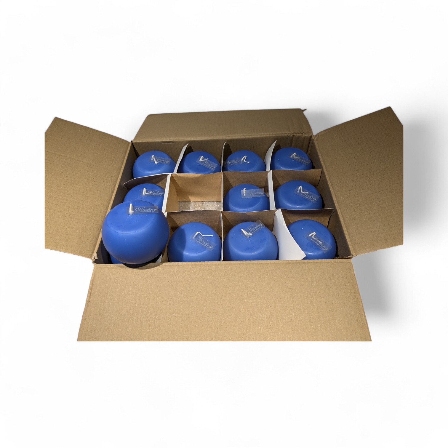 Kerzen, BLAUE Kugelkerzen Ø10 cm. Kiste mit 12 Stk.