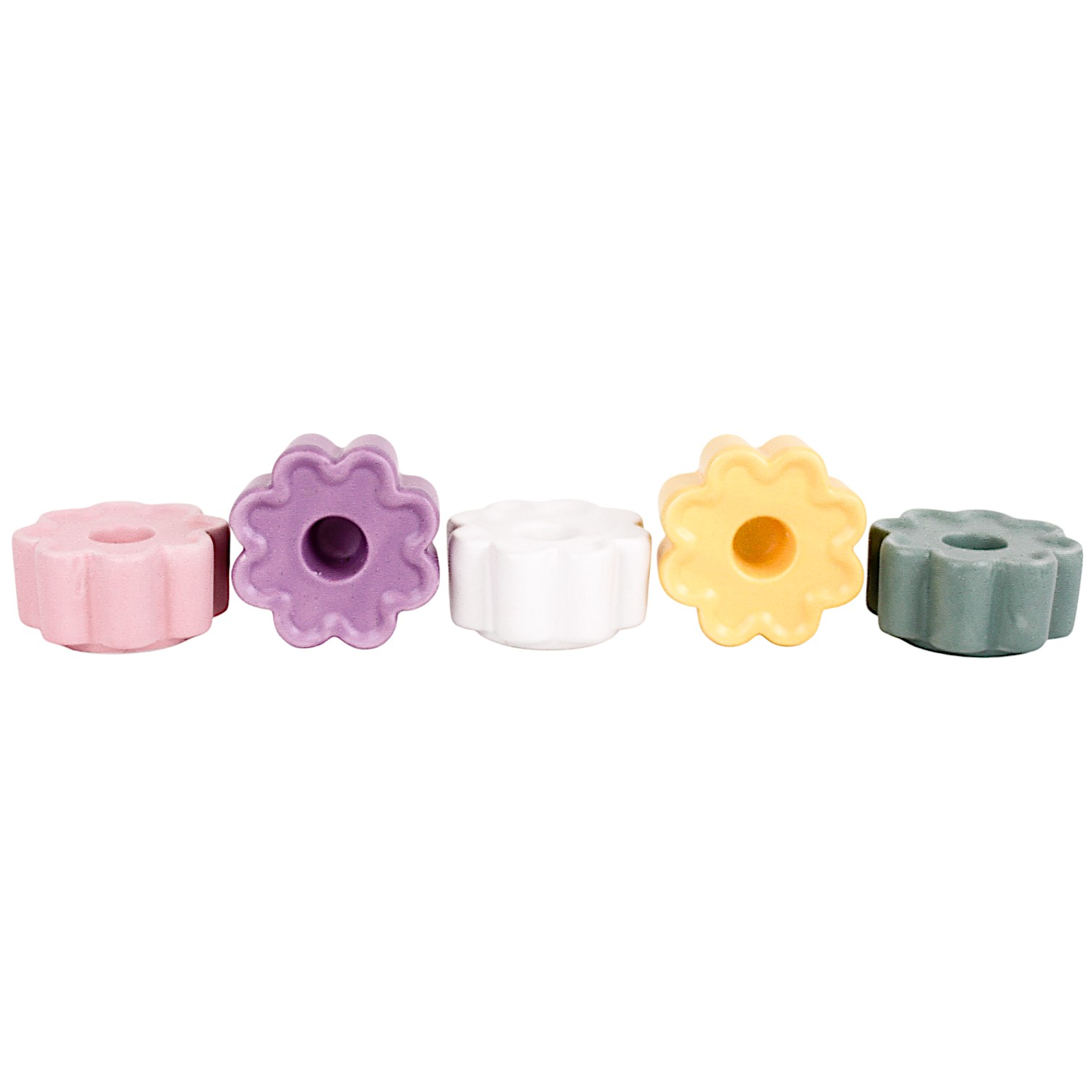 Dieser elegante Kerzenhalter, geformt wie eine weiße Blume, fügt Ihrem Zuhause einen Hauch von Natur hinzu. Mit einem Durchmesser von 7,5 cm und einer Höhe von 4 cm passt er perfekt zu Stabkerzen. Verwenden Sie ihn als Mittelpunkt auf dem Esstisch, um eine gemütliche Atmosphäre zu schaffen.
