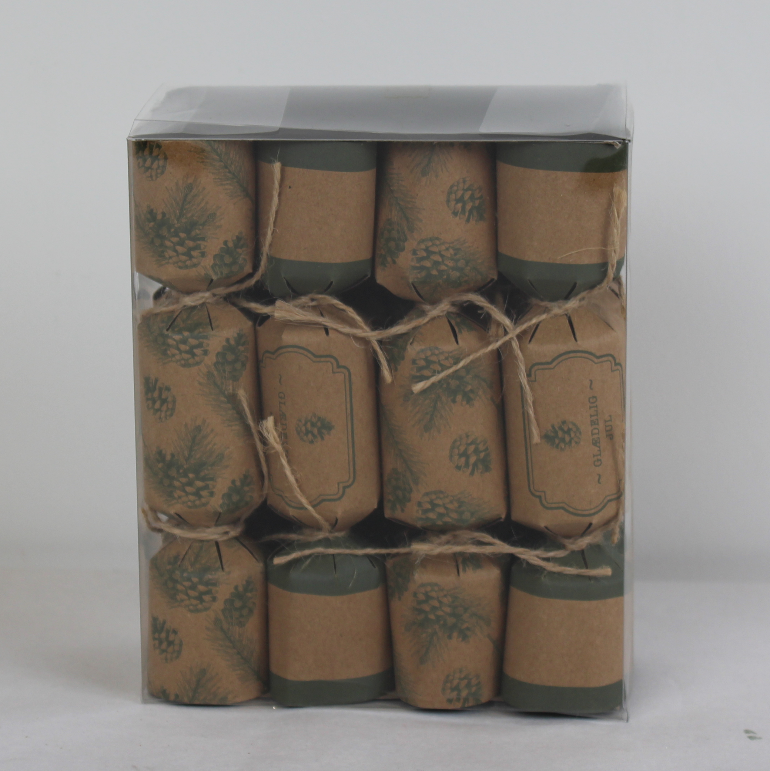 Knallbonbons, beige mit grünem Druck. 14 cm. 8 Stück.
